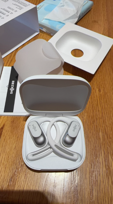 佩戴:柔性钛合金耳挂+液态硅胶,单耳约9.6g,能够很好的贴合耳廓,眼镜党友好,作为日常佩戴是稳固的。