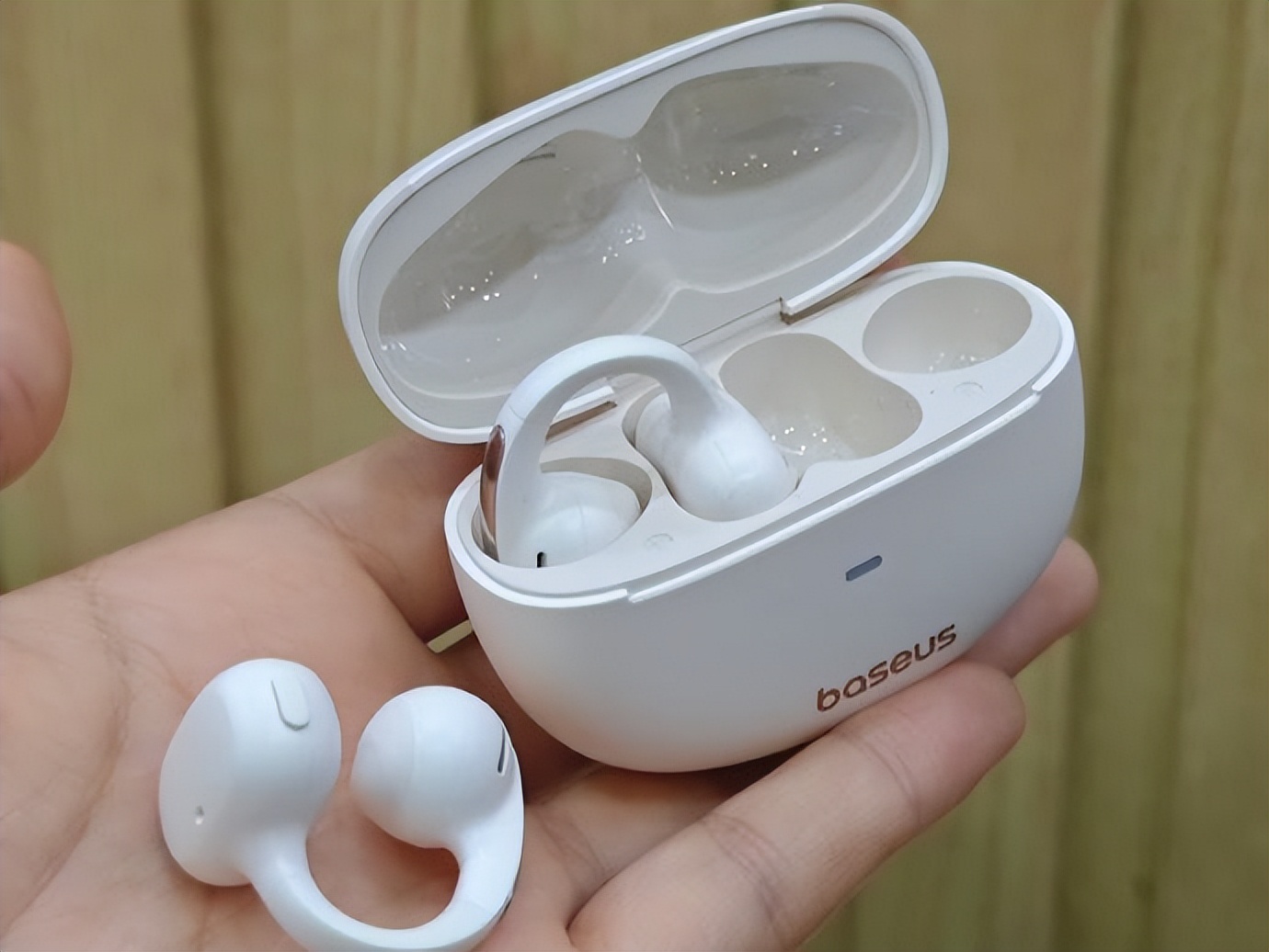 佩戴体验:这款耳机单耳6.3g,重量在同类产品中属于偏重,长时间佩戴可能会有夹耳感,舒适性表现中规中矩;但在佩戴稳固方面,采用的C形桥结构,配合12°黄金夹角设计,外层包裹亲肤TPU材质,能够紧密贴合多数用户的耳型,在日常使用中不易出现松动或脱落的情况,适合对佩戴稳定有较高要求的用户。