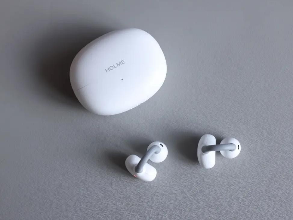 佩戴体验:佩戴上很贴心,单耳仅4.5克,戴在耳朵上几乎没什么存在感。而且前高后低2.5毫米的错位设计,很好的贴合耳朵,加上电池仓12度的弧面耳托,不仅佩戴贴合,压力分散得也均匀,戴着既稳又舒服。运动时佩戴,耳机也不容易滑落,即使是动态场景下也能稳稳的贴在耳朵上。