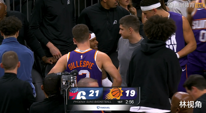 这段时间吉莱斯皮带队,布克、狄龙和格林都在场边休息,这阵容明显没什么自主进攻能力。