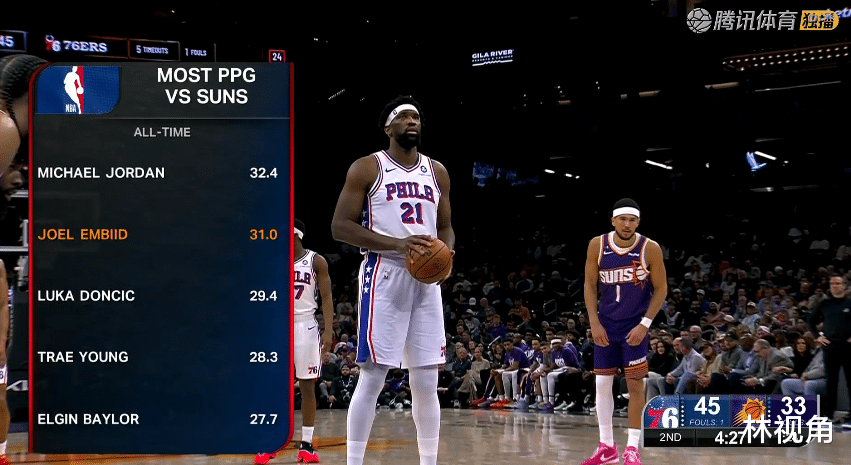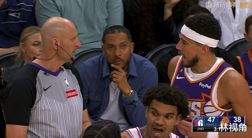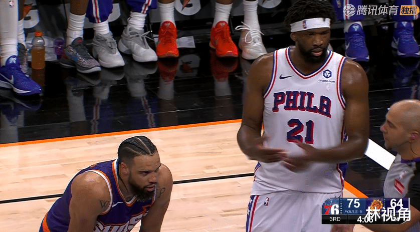 恩比德接连造杀伤罚球,布克和狄龙先后找裁判理论探讨,可惜于事无补啊,恩比德造杀伤能力可是联盟顶级。