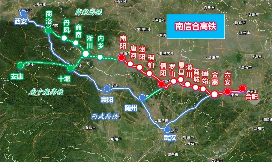 和合肥、西安、郑州等知名米字高铁枢纽相比,南阳的高铁布局优势更加明显。合肥的米字型枢纽中有一些线路是时速250公里的城市轨道交通线,而西安米字形高铁站建设周期较长,并且包含一些不是350km/h的速度等级干线;郑州米字高铁也有不少非350km/h速度等级的干线在其中。