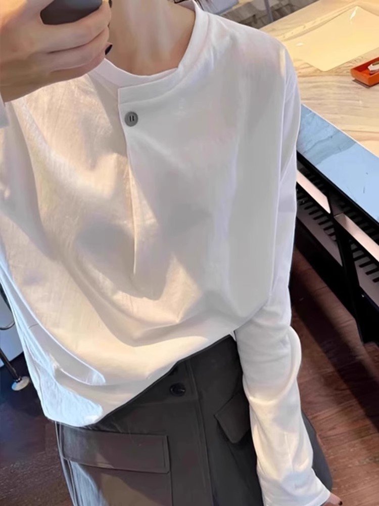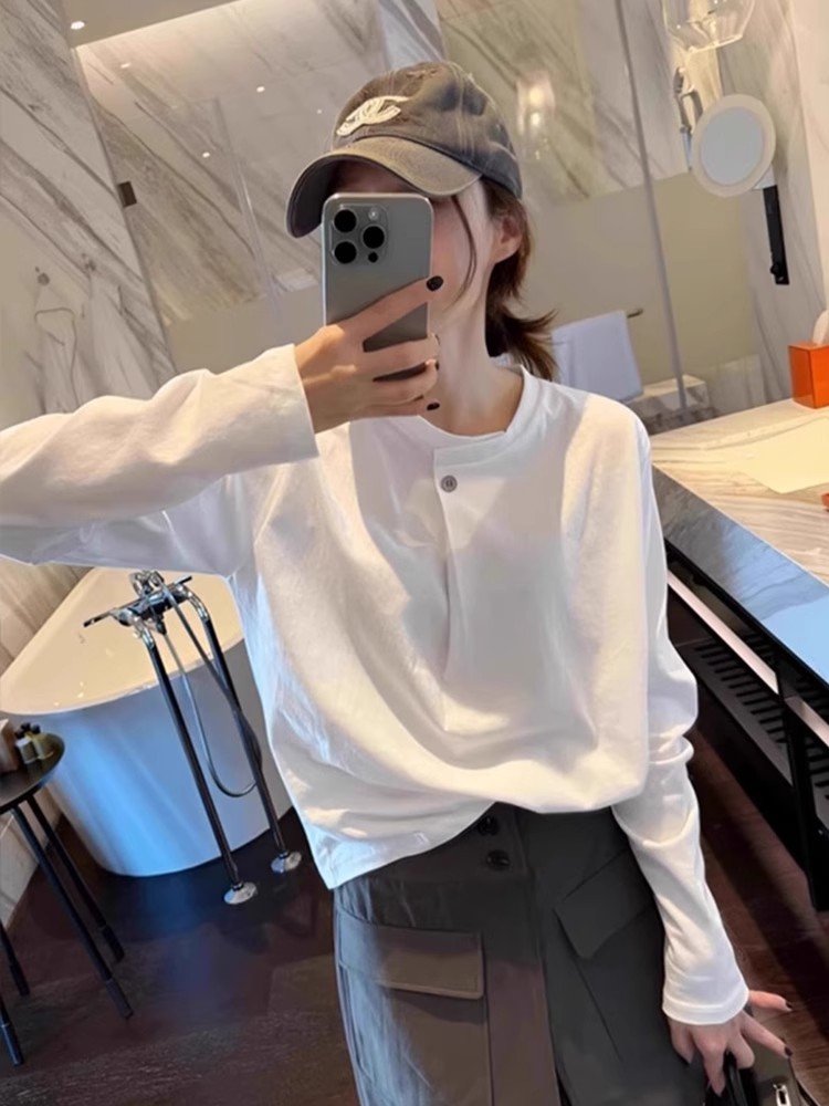 白色纯棉长袖T恤女早春圆领内搭可外穿打底