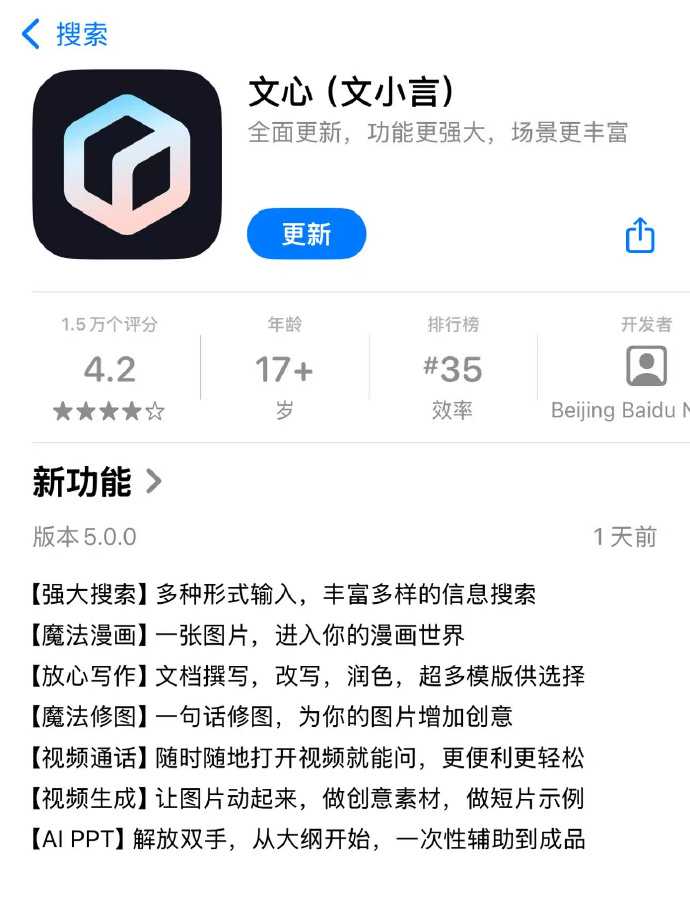 据悉,文心APP此前曾发布聚焦公文写作场景的“放心写”功能,支持文本事实自动查证校对。此次上新的“魔法漫画”功能更带来了低门槛、强互动、个性化的内容生产新体验,全面提升搜创能力。