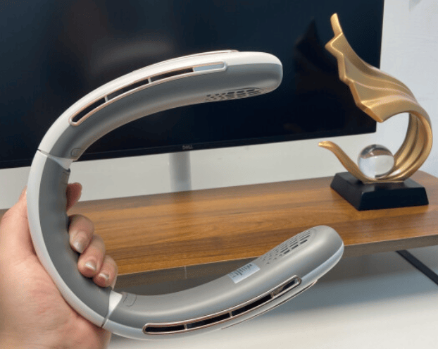 推荐理由:这款风扇主打强劲的风力,专为需要高效降温的用户设计。虽然其395g的重量相比其他同类产品较重,但通过精密的重力平衡系统,佩戴时仍然能够保持一定的舒适度,长时间使用不会有明显的不适感。