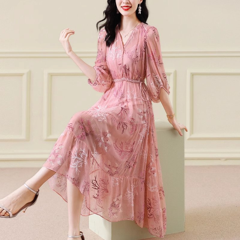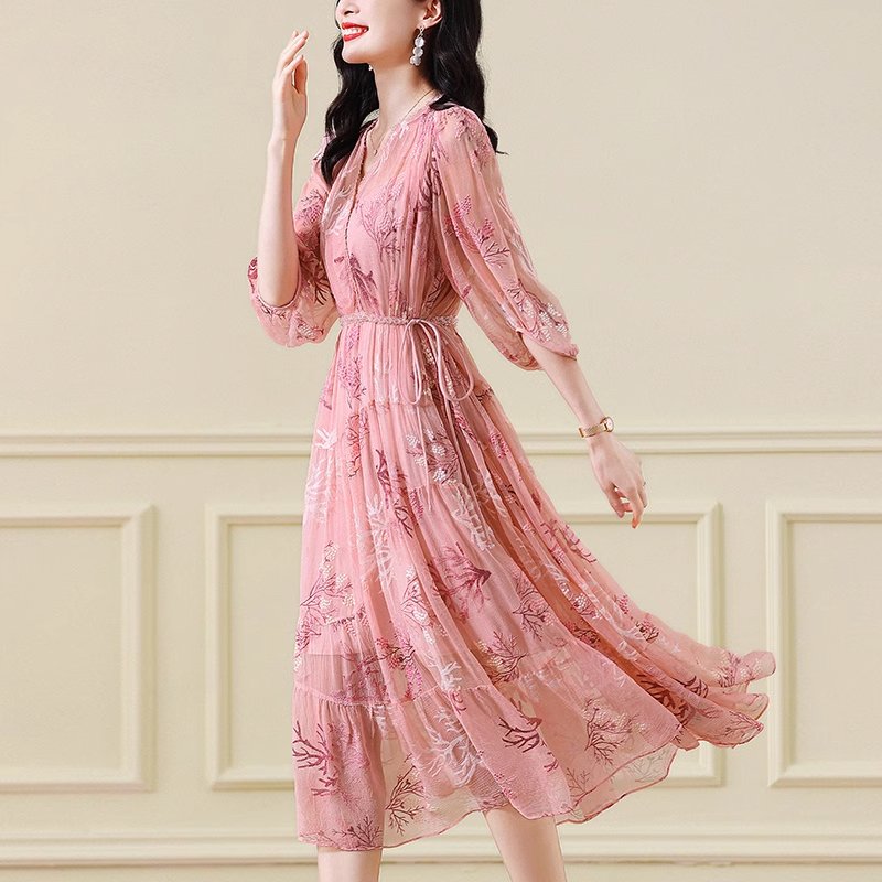 真丝顺滑,轻盈如羽,夏日内敛奢华之选,绽放女性温婉光彩。连衣裙真丝连衣裙桑蚕丝连衣裙