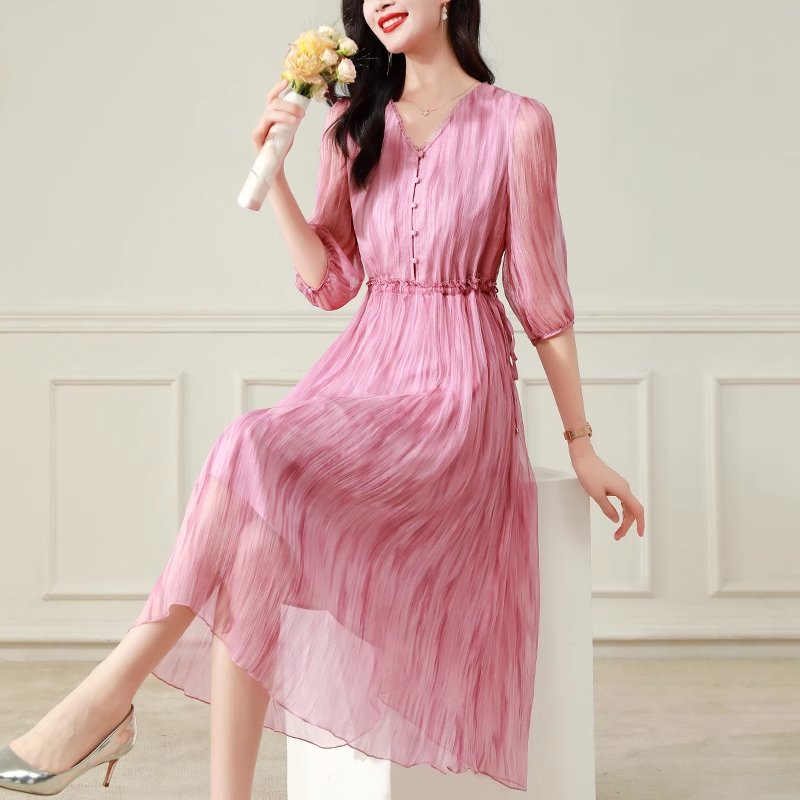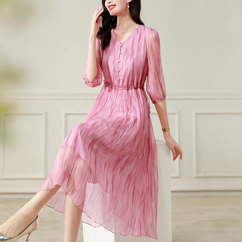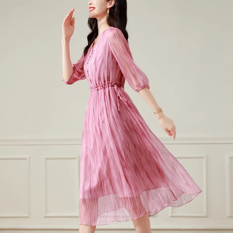 真丝顺滑,轻盈如羽,夏日内敛奢华之选,绽放女性温婉光彩。连衣裙真丝连衣裙桑蚕丝连衣裙
