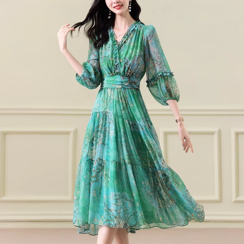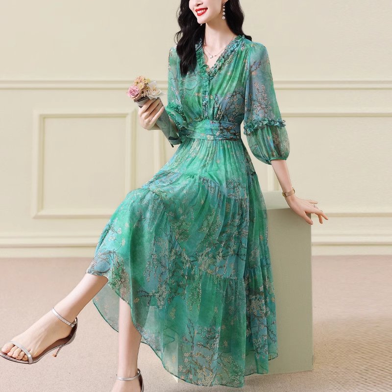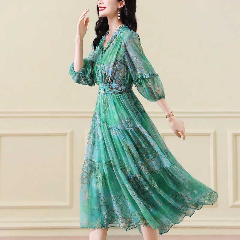 真丝顺滑,轻盈如羽,夏日内敛奢华之选,绽放女性温婉光彩。连衣裙真丝连衣裙桑蚕丝连衣裙