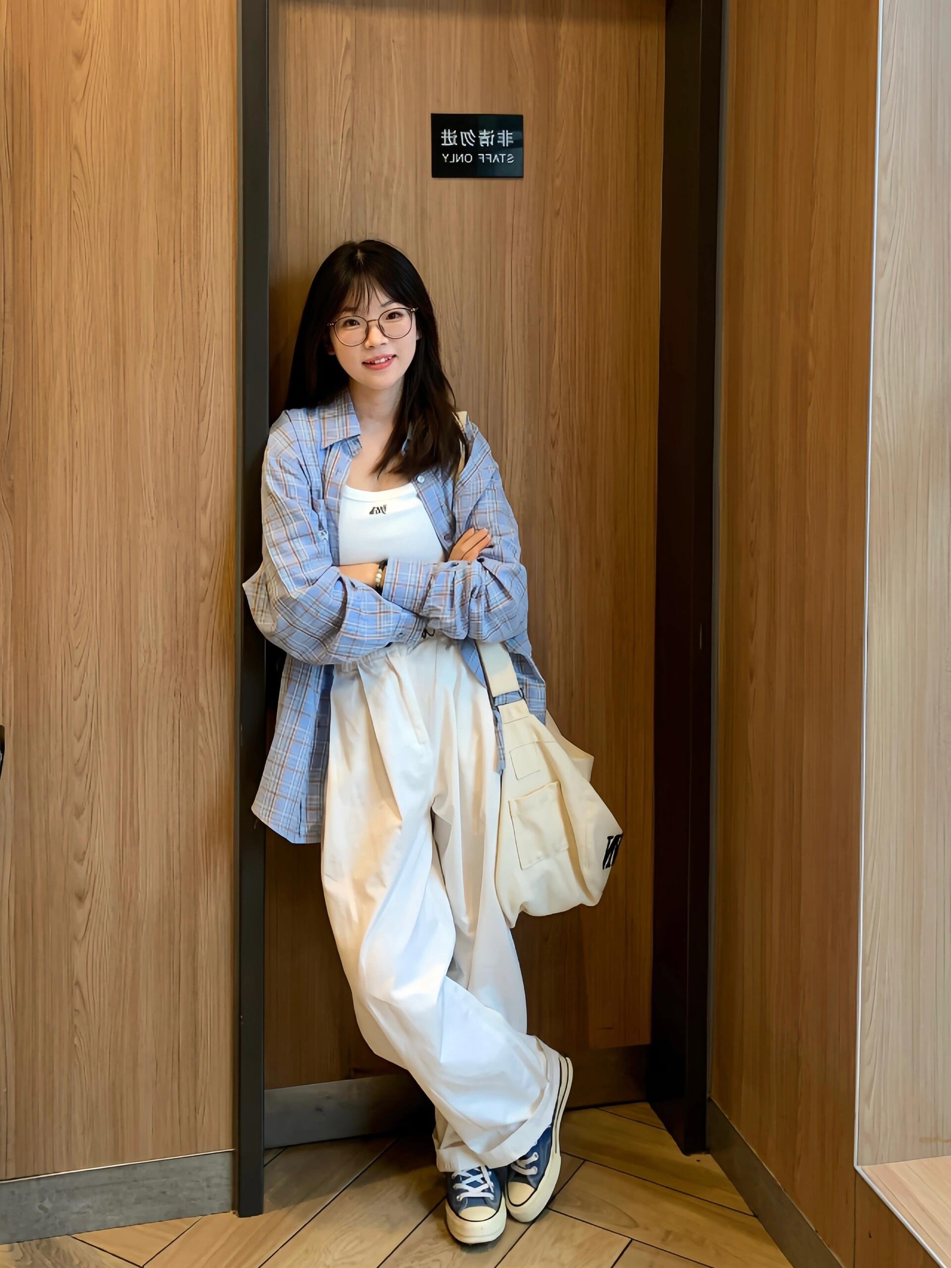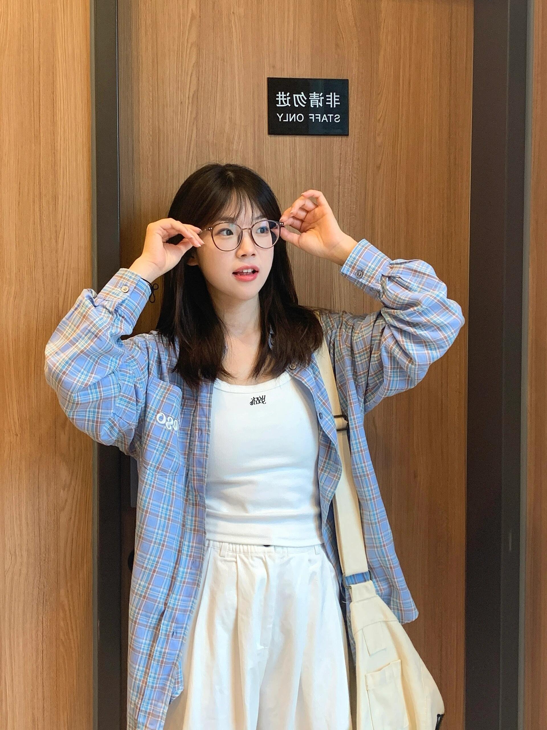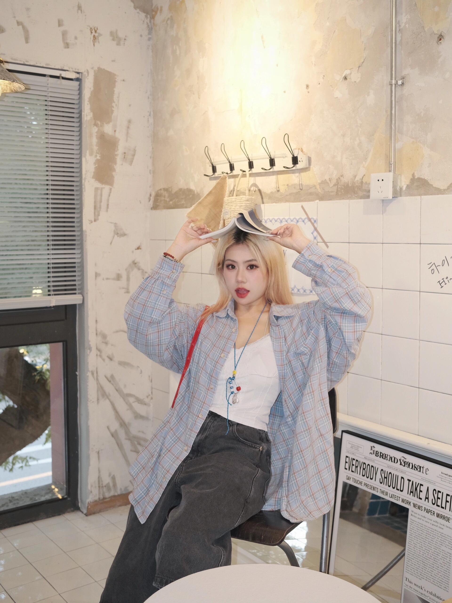 小个子百搭春夏季蓝色格纹衬衫外套