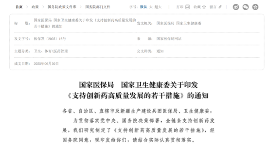 今年6月,国家医保局、国家卫生健康委关于印发《支持创新药高质量发展的若干措施》,进一步夯实创新药高质量发展的政策基础。