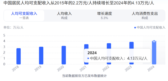 从数据来看中国居民人均可支配收入2024年达4.13万元/人,较2023年的3.92万元/人增长5.4%,较2015年的2.2万元/人累计增长87.7%,已跨过中等收入门槛,也使得消费者有能力为更有效的创新药支付溢价。