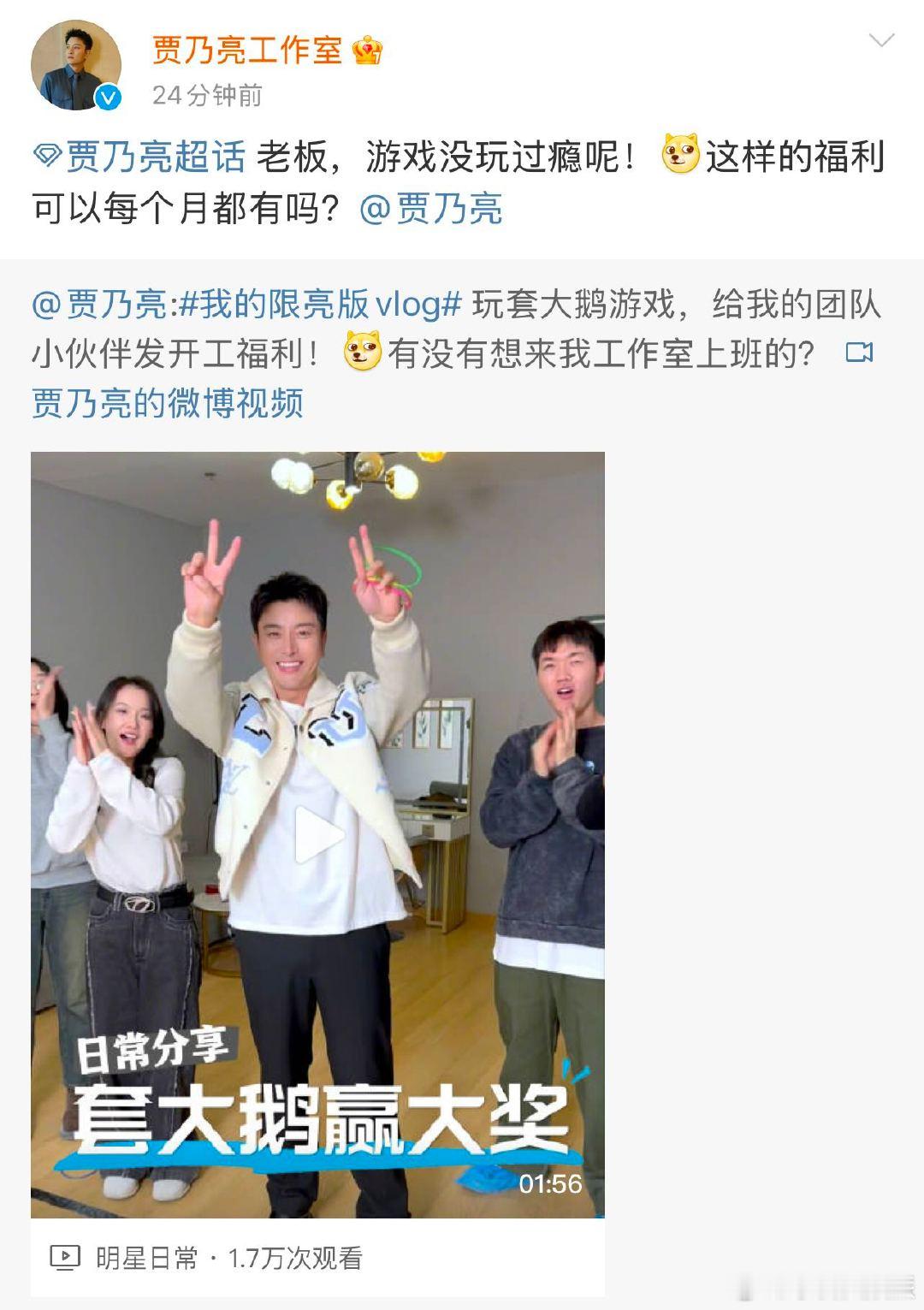 贾乃亮玩套大鹅给员工发福利 还有谁不知道贾乃亮是神仙老板?玩套大鹅给员工发福利