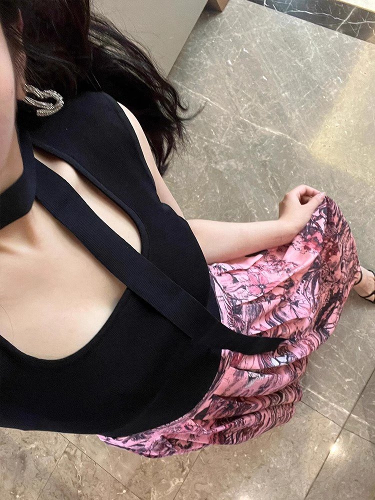 法式别致黑色挂脖方领飞飞袖短袖t恤女夏季