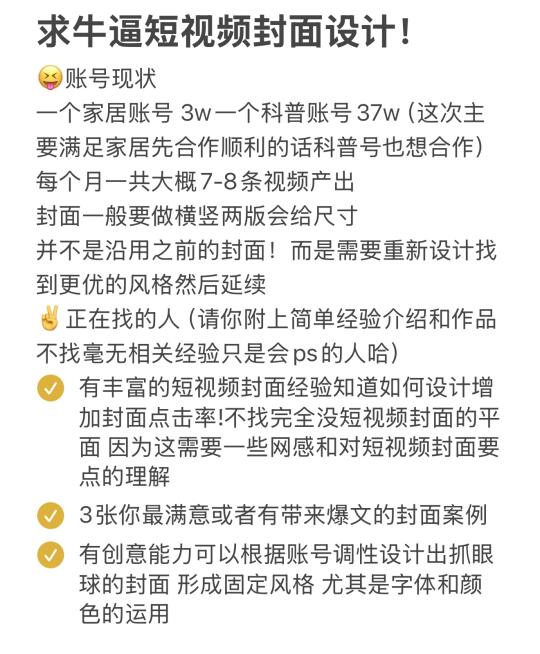 求短视频封面设计!有网感有经验的来!