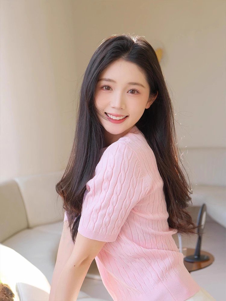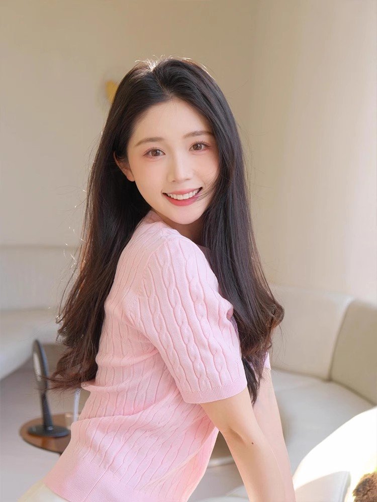 韩系粉色冰丝麻花正肩短袖针织t恤女夏季小