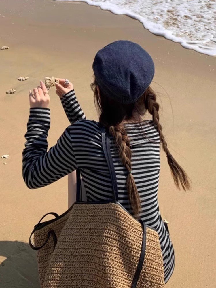2025早春新款欧洲站冷淡系高级感条纹斜