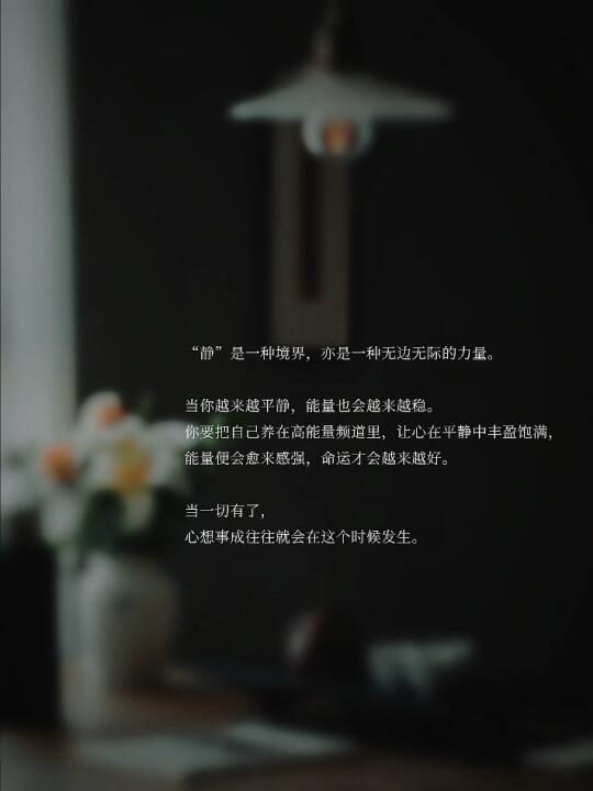 你要把自己养在高能量频道里,让心在平静中丰盈饱满,能量便会愈来感强,命运才会越来越好。