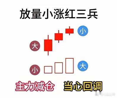 2. 放量小涨红三兵,显露主力减仓迹象,应提高警觉,防范回调风险。