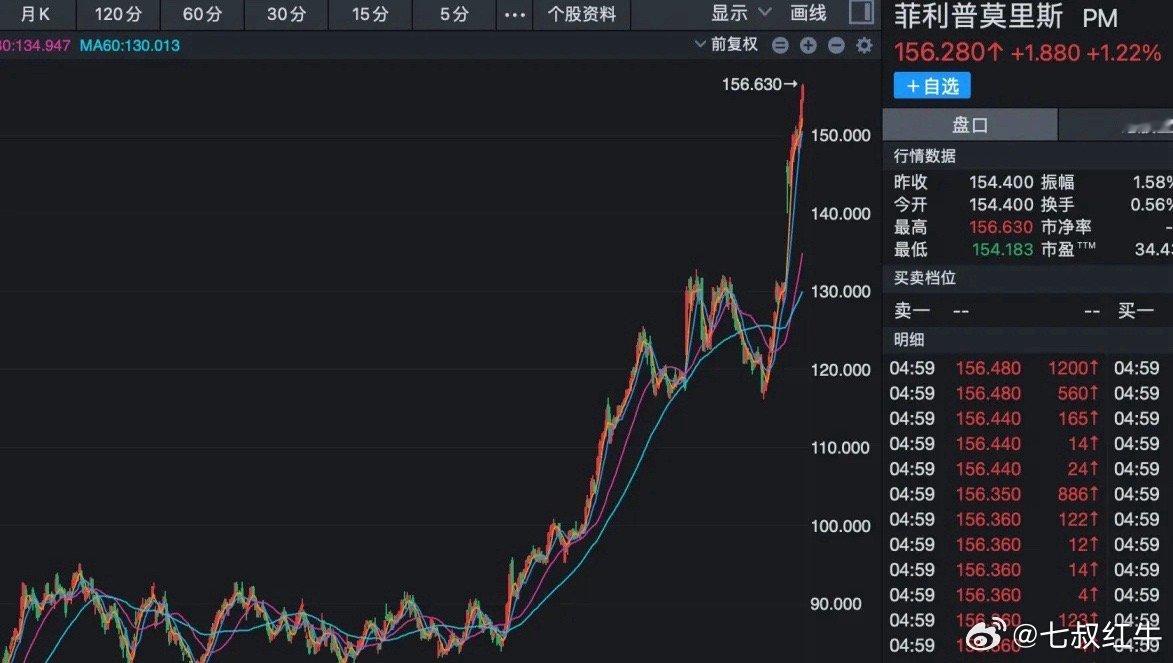 最近美股的菲利普莫里斯大幅上涨,这个股票大涨核心原因是公司的电子烟业务持续高增长,