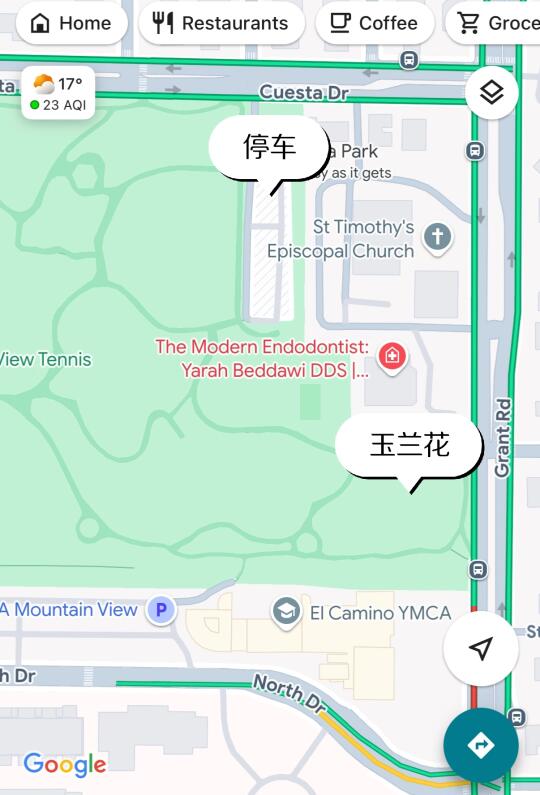 昨天去了湾区的Mountain View一个免费小公园Cuesta Park看玉兰花,现在正是peak[搜索高亮],赶紧去拍照吧!一开始我们还没找对地方,所以把具体地址放在图4了