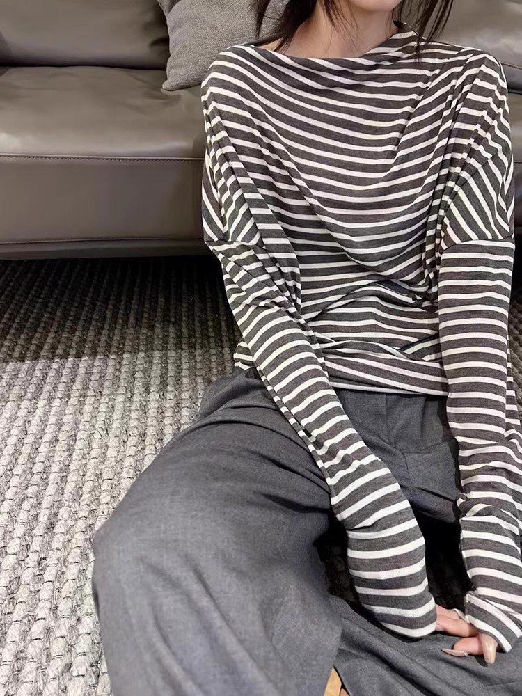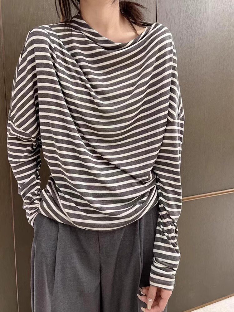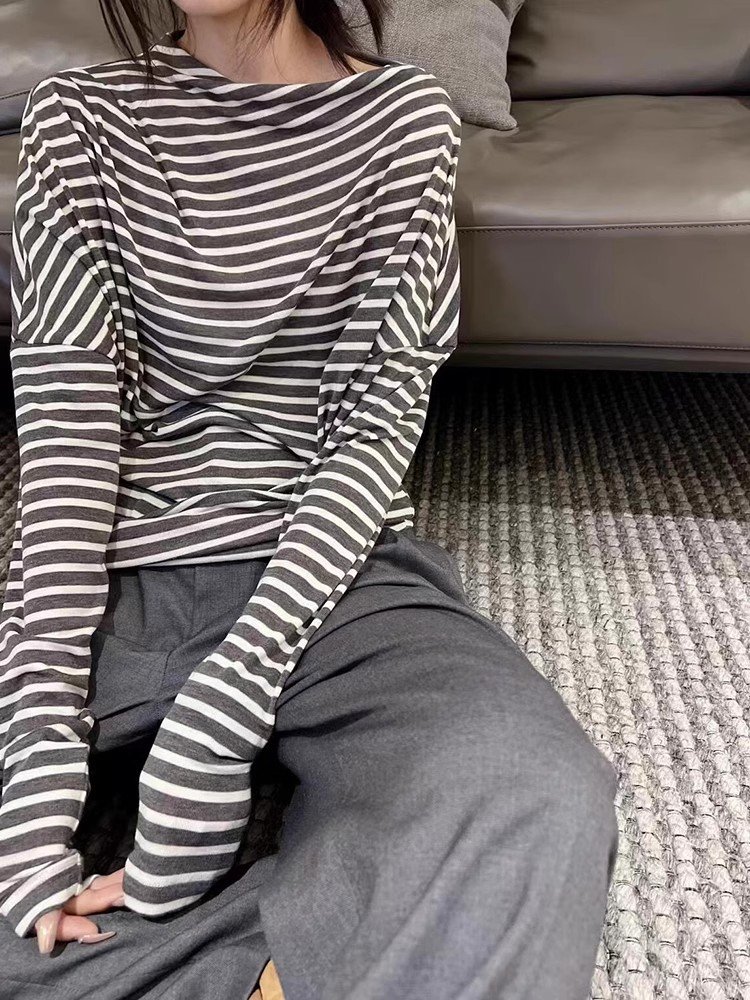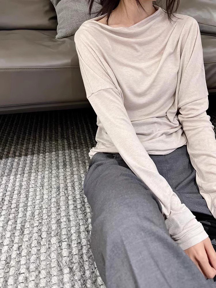 韩系杏色圆领长袖t恤女春秋季小众设计感内