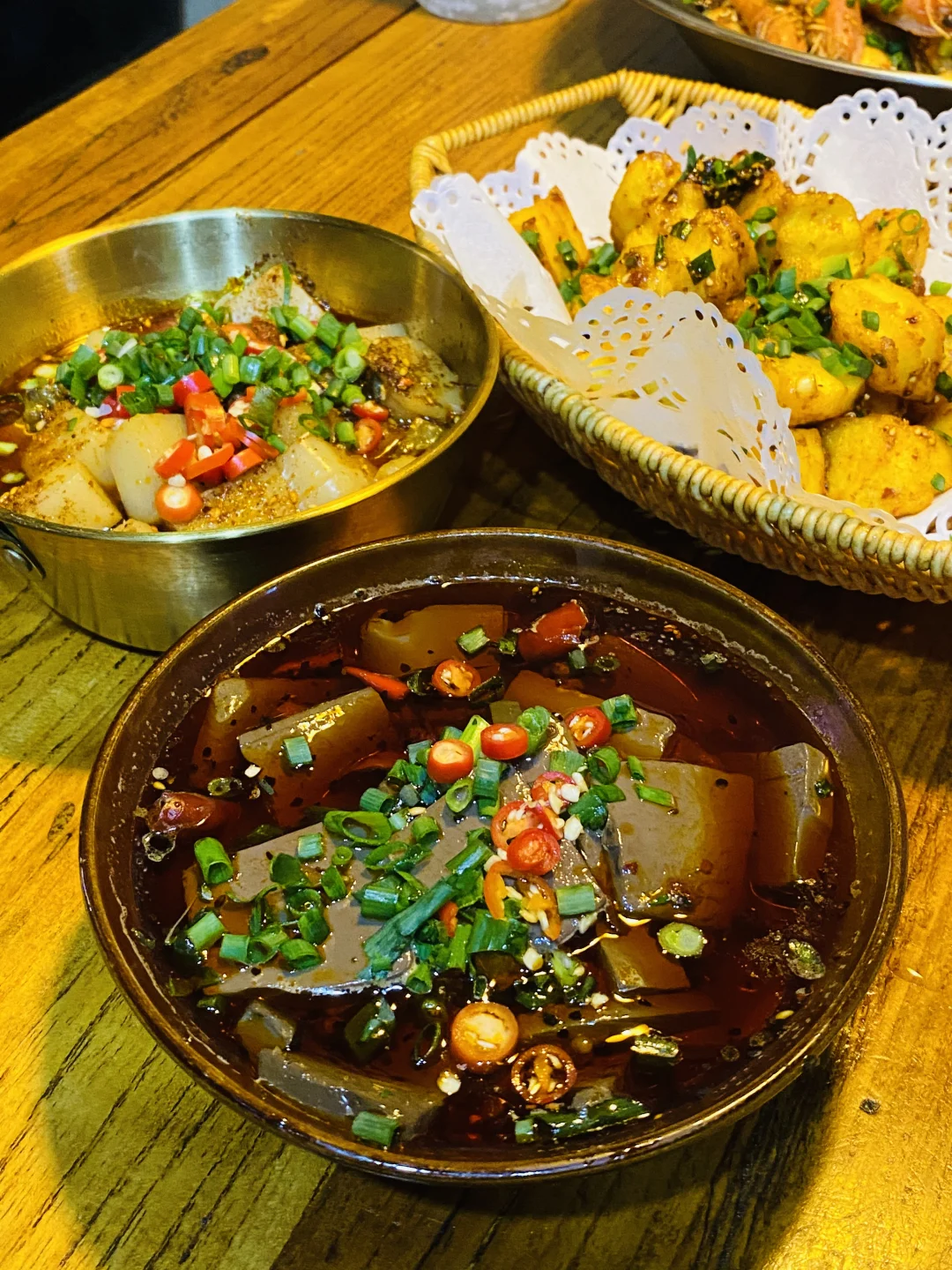 🔥能在新街口开十多年的馆子,绝对是经得起时间的考验的!门面不算很大,但空间很有设计感,挺温馨的!小吃性价比超高! 🍢招牌冷锅串串,麻辣带劲儿!肉类品种丰富,且荤素同价,肉食爱好者狂喜!💕 🥔锅巴土豆,外壳香脆,内里绵软,一口接一口,下酒好菜,单吃也好棒!👍 🐰手撕兔腿,肉质饱满,卤制入味,啃得停不下来!!! 🦆鲜椒鸭血,鲜嫩滑爽,太适合爱鸭的南京人啦! 👨老板是地道四川人口味有保证,几个阿姨也特别热情!会再来哦!!