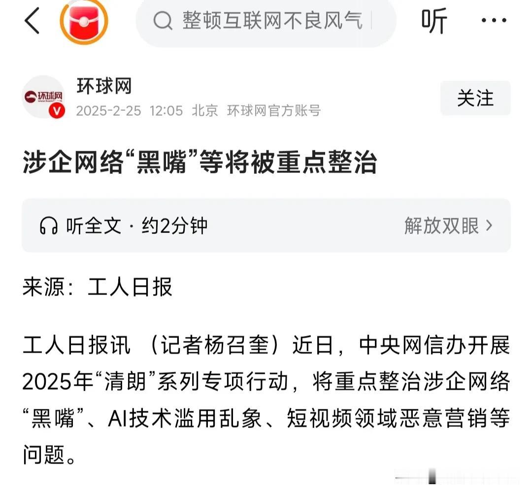 抹黑企业家的行为早该制止了,网络黑嘴将被重点整治,虚假人设是所有平台禁止的行为。