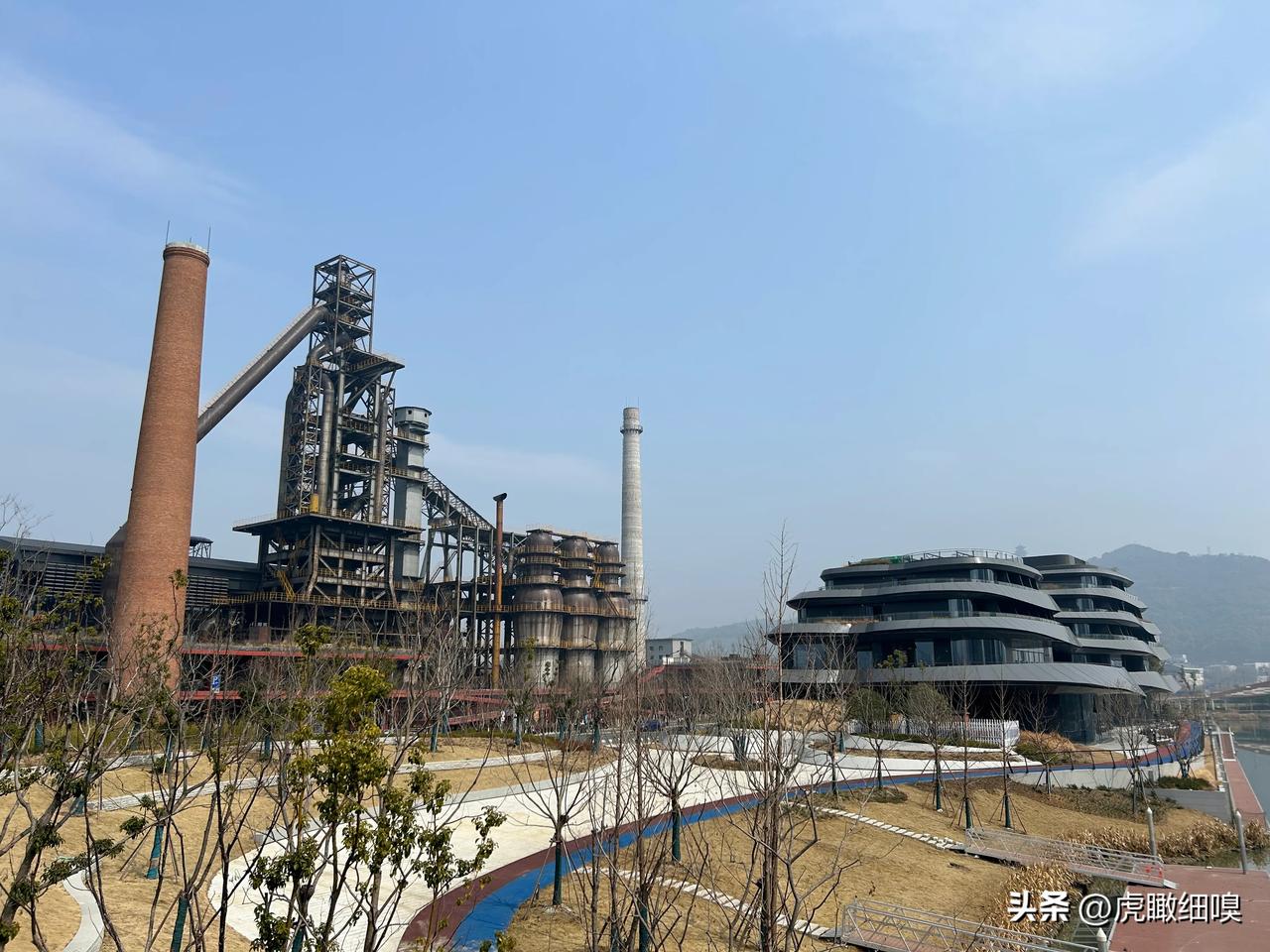 杭钢公园,这一由杭州钢铁厂改造而成的遗址公园,保留了诸如烟囱、炼钢炉、采矿传输带