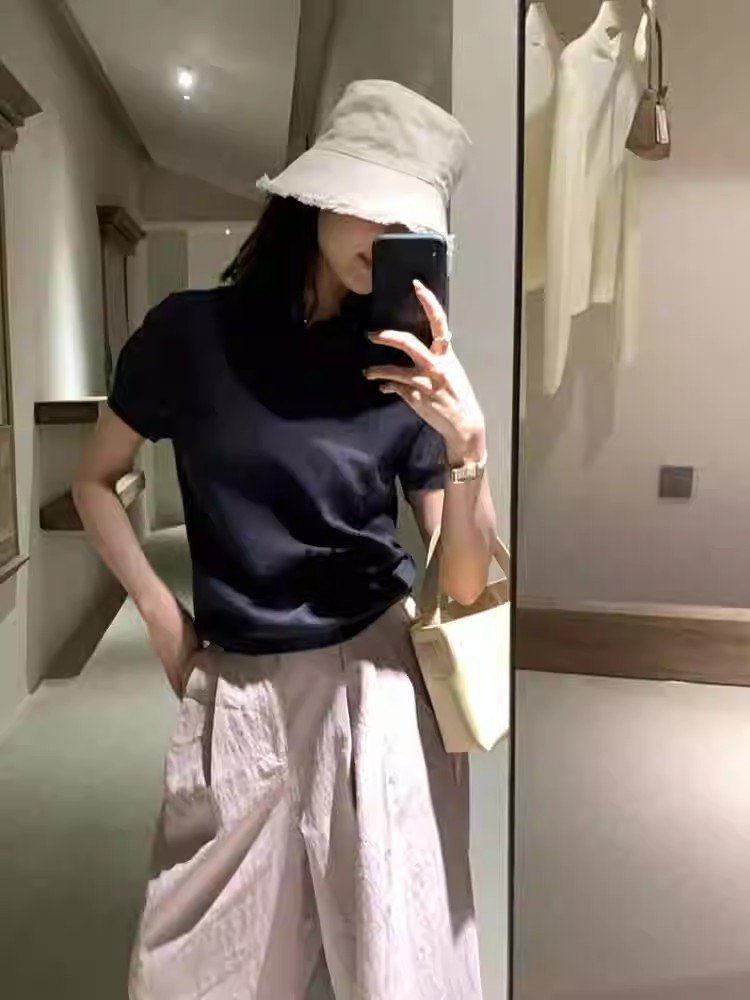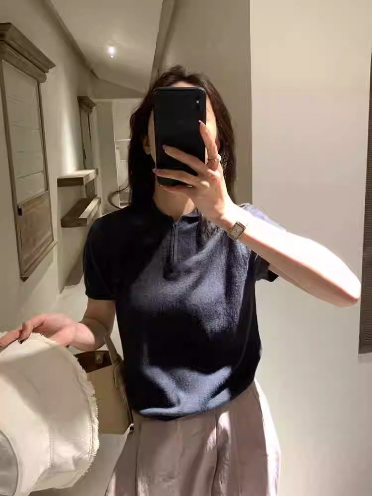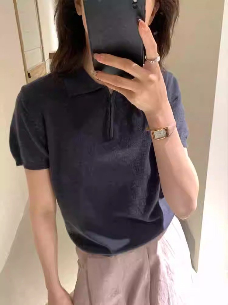 韩系灰色polo领冰丝短袖t恤女夏季小个
