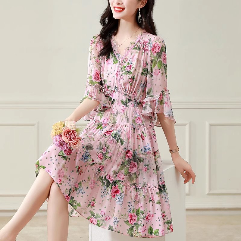真丝顺滑,轻盈如羽,夏日内敛奢华之选,绽放女性温婉光彩。连衣裙真丝连衣裙桑蚕丝连衣裙