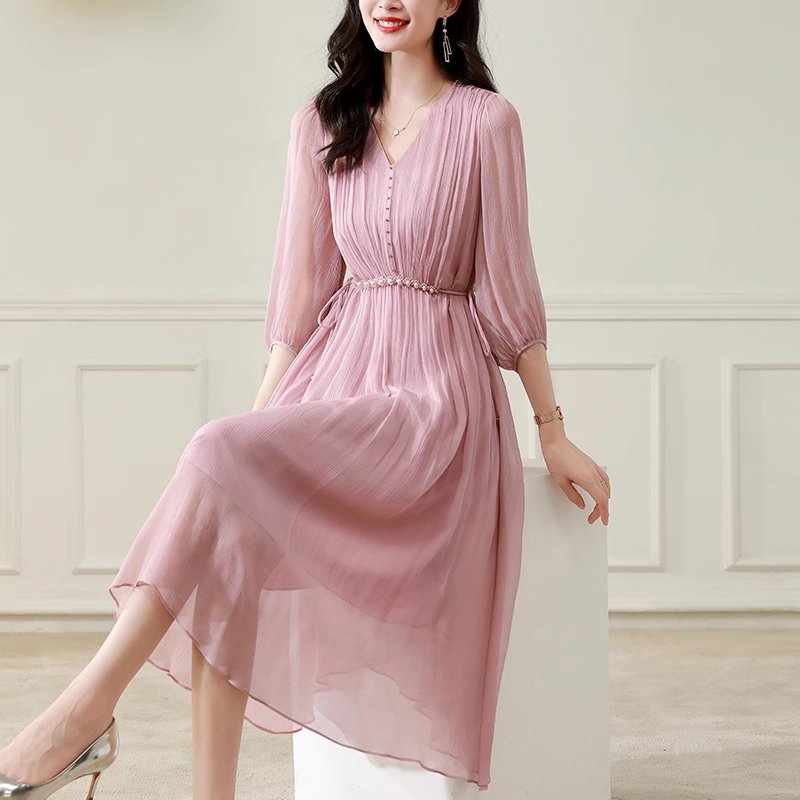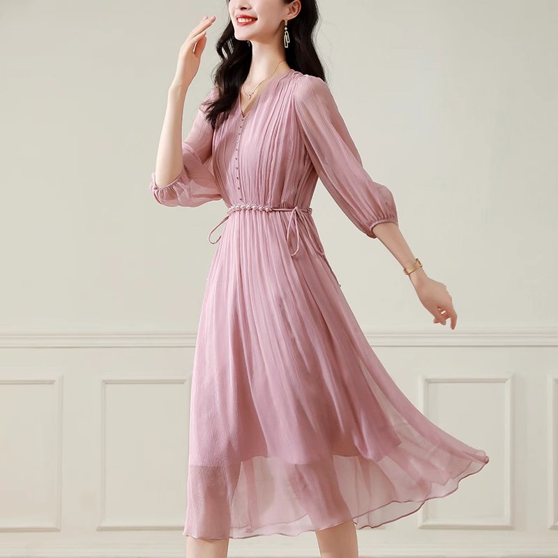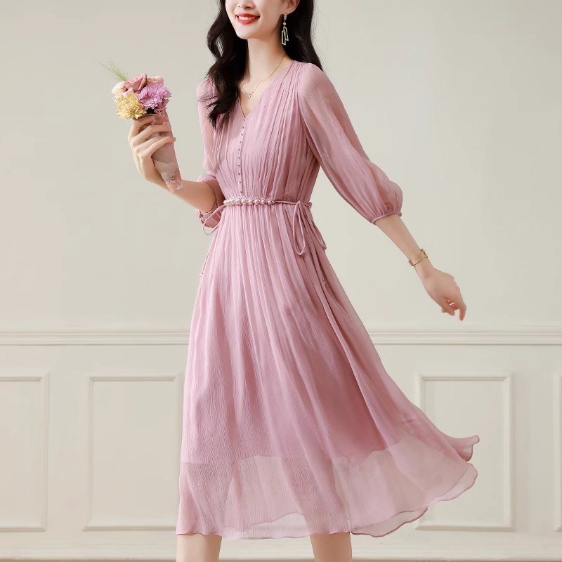 真丝顺滑,轻盈如羽,夏日内敛奢华之选,绽放女性温婉光彩。连衣裙真丝连衣裙桑蚕丝连衣裙