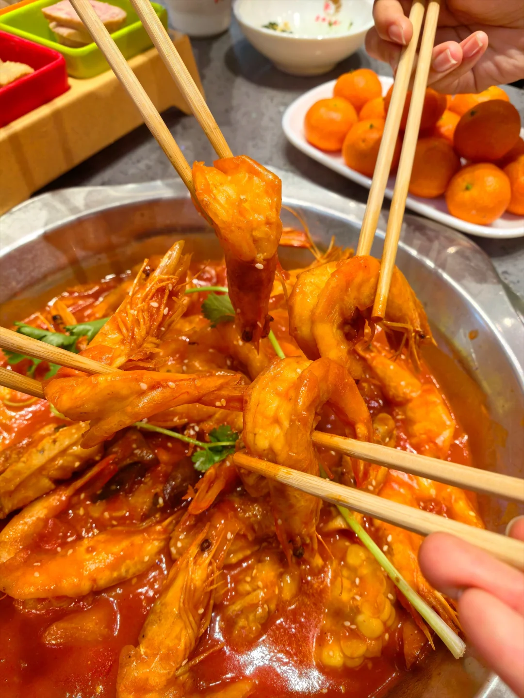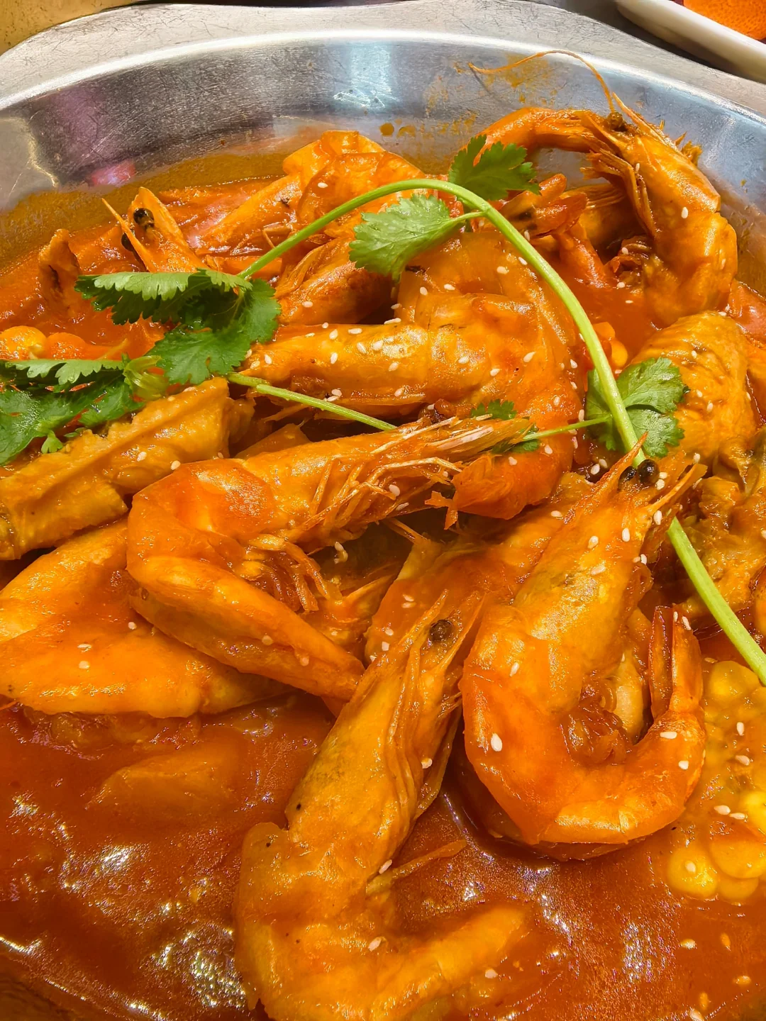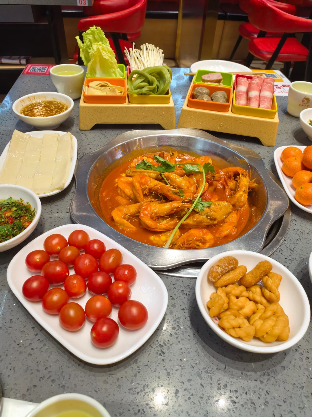 💥专做大虾,所以突出,虾个头很大,开好背,很入味!🈶7种口味选择,最推荐的是麻辣牛油味,酥香麻辣的大虾,谁能不爱💖这次🈶小朋友,所以选择了番茄浓香味,色香味俱全!吃完虾再加汤打火锅,太爽了!✌🏻