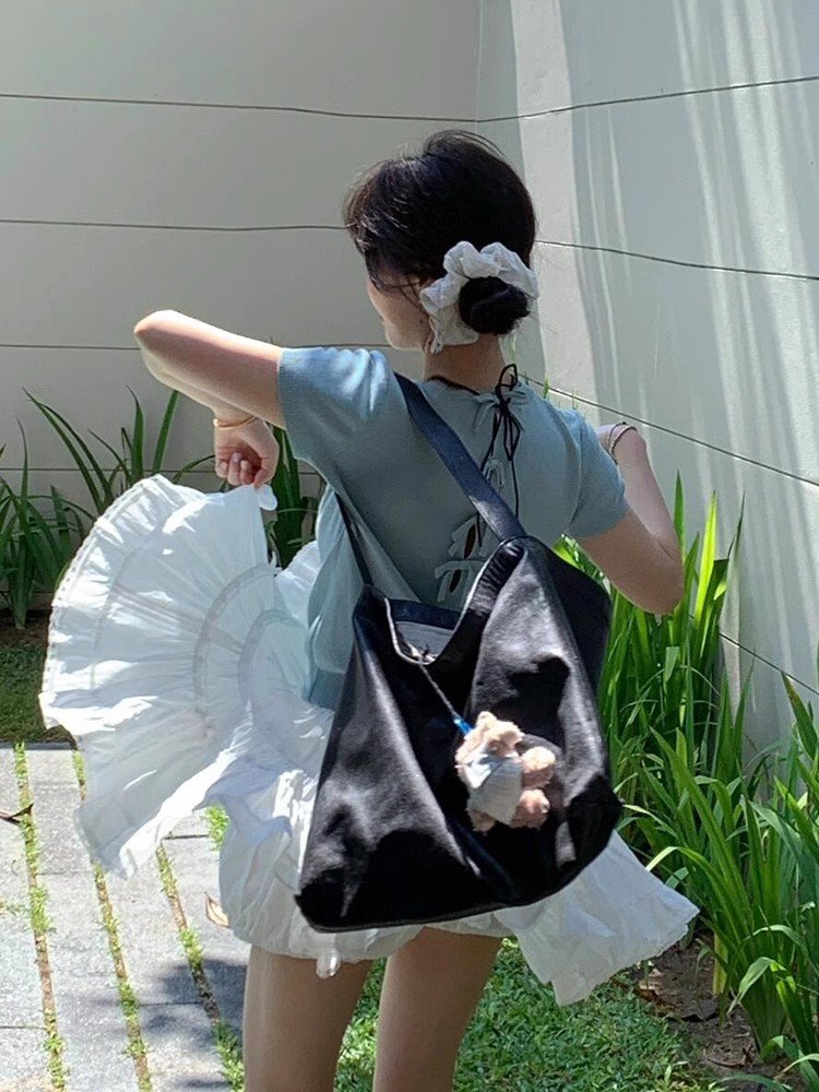 薄荷曼波绿冰丝针织短袖t恤女夏季小个子多