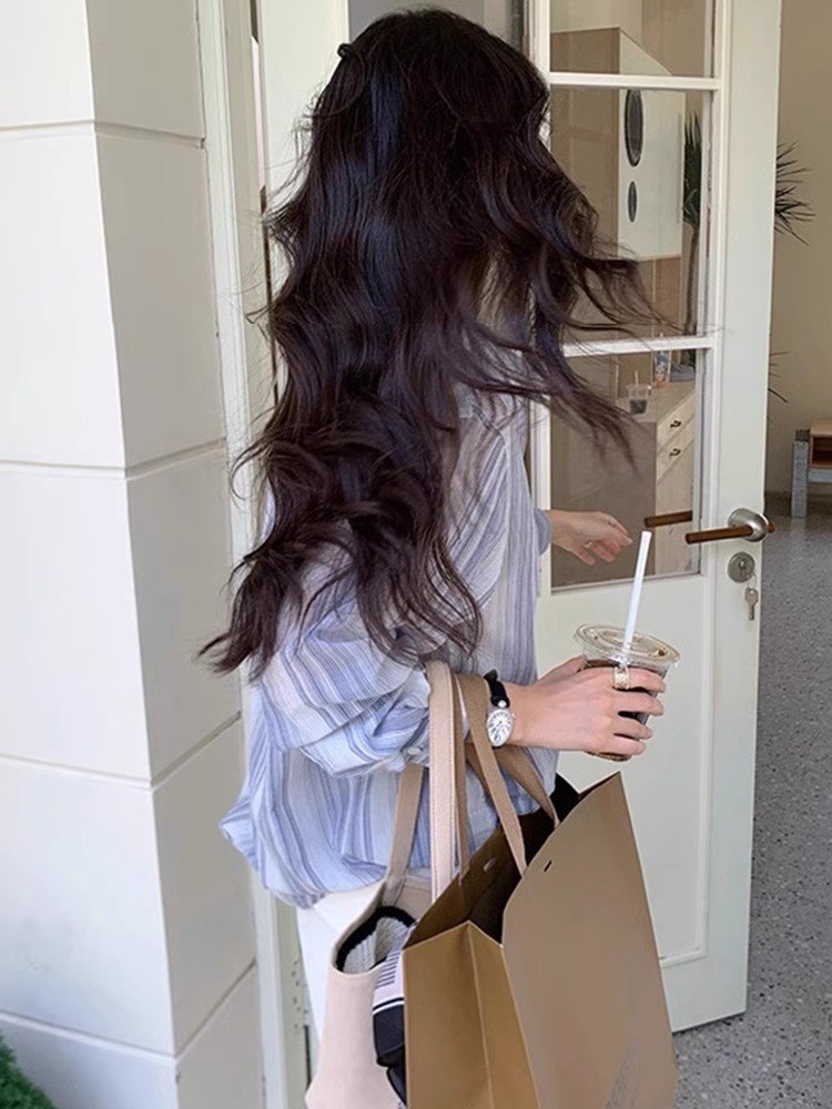 polo领条纹衬衫女士2025春季新款法