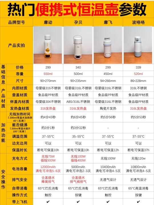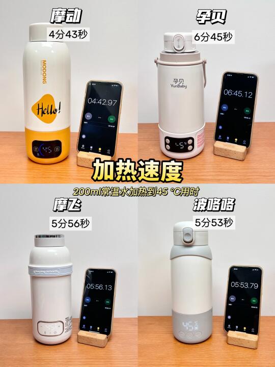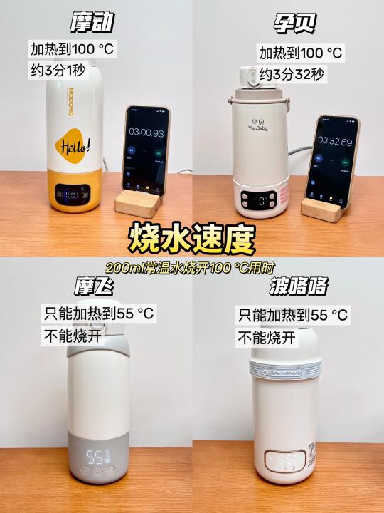 🌈我选了4款热门的便携式恒温壶:摩动、孕贝、摩飞、波咯咯进行实测,具体测评结果看图片啦,宝爸宝妈可参考哦~