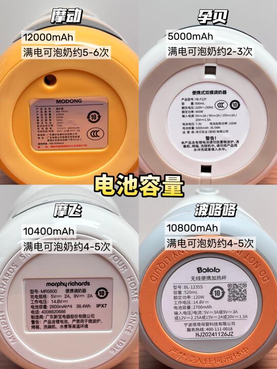 带娃出门最怕没电!优选≥10000mAh的,能烧4-5次水,泡奶、辅食、喝水都够用了!容量太小只能当保温杯用,烧一两次水就用光电,等真要泡奶的时候,直接翻车😣