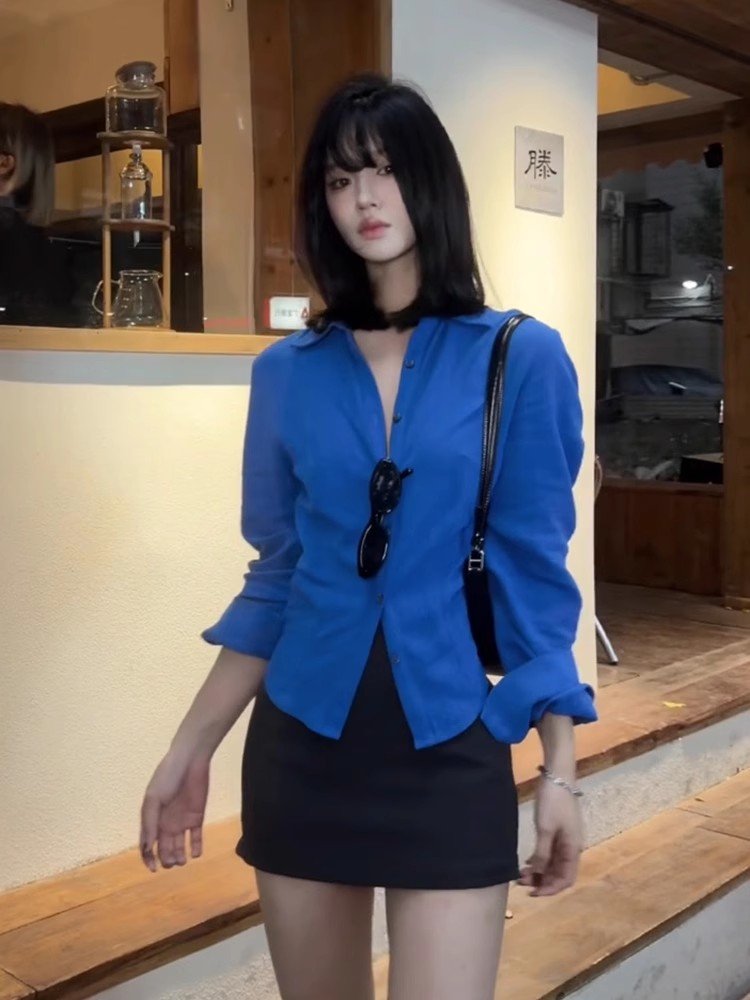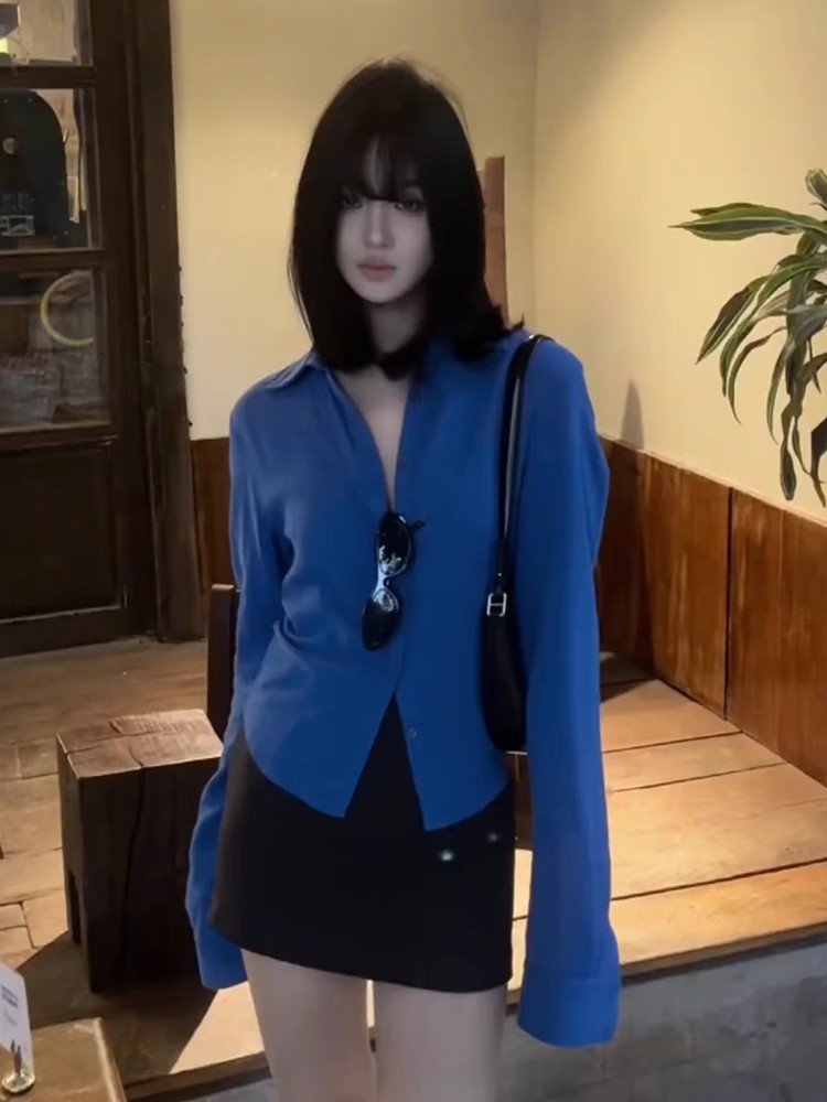 克莱因蓝POLO衫春秋外搭女上衣薄款开衫