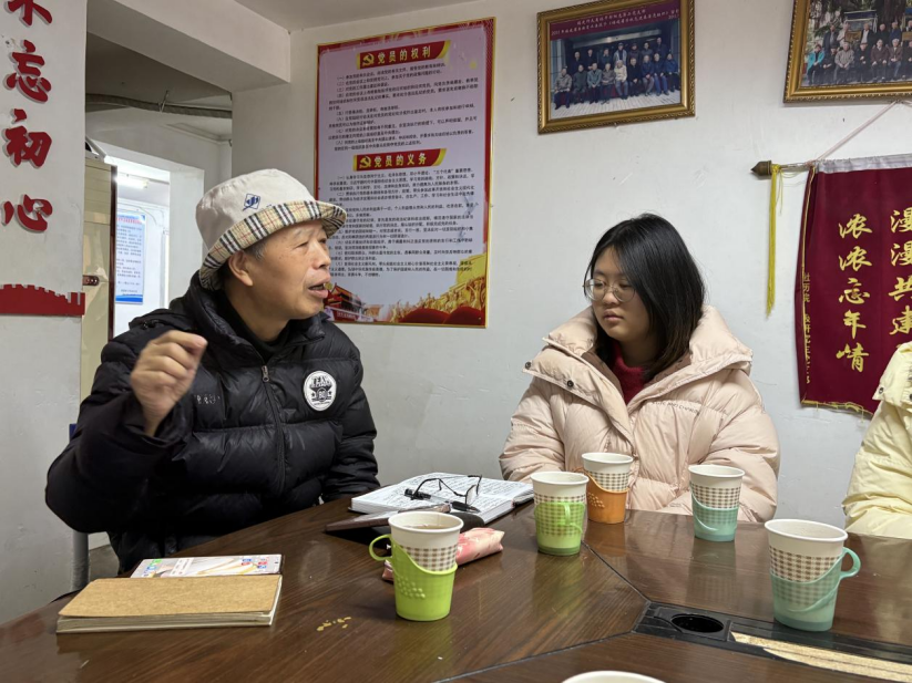 2026年1月25日上午,“福韵红途”实践队走进福州市仓山区对湖街道阳光工作室,与抗美援朝老兵黄以孟老师及其志愿者团队展开交流。通过面对面访谈,成员们从红色历史中探寻“福”文化的时代内涵,思考青年一代在文化传承中的责任与担当。