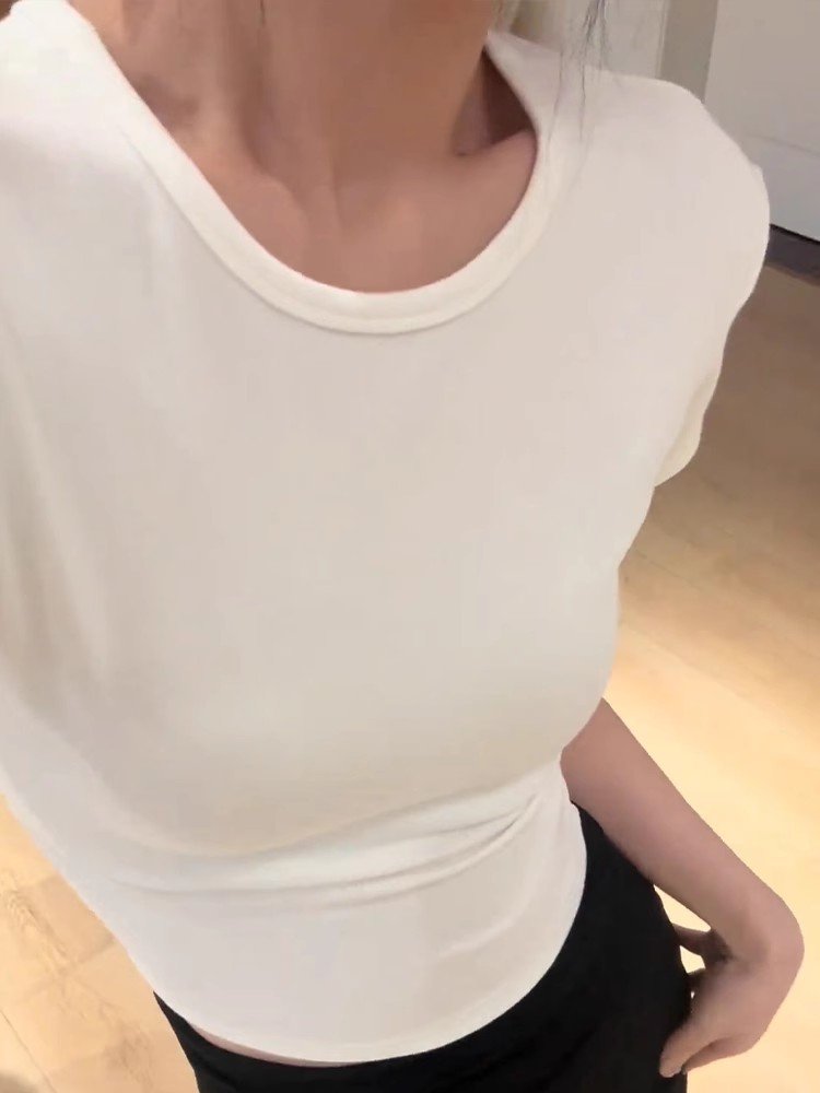 法式白色圆领后背镂空正肩短袖t恤女夏季甜