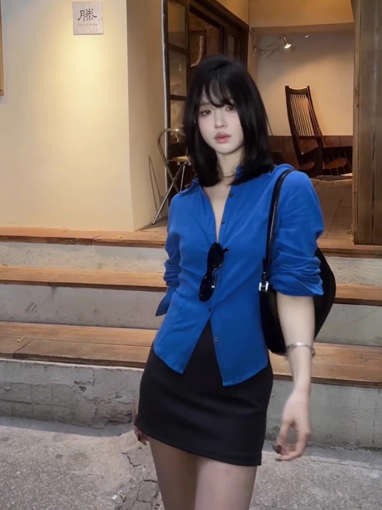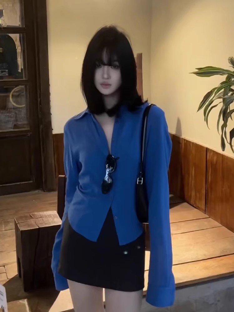 克莱因蓝POLO衫衬衣小个子外搭修身开衫
