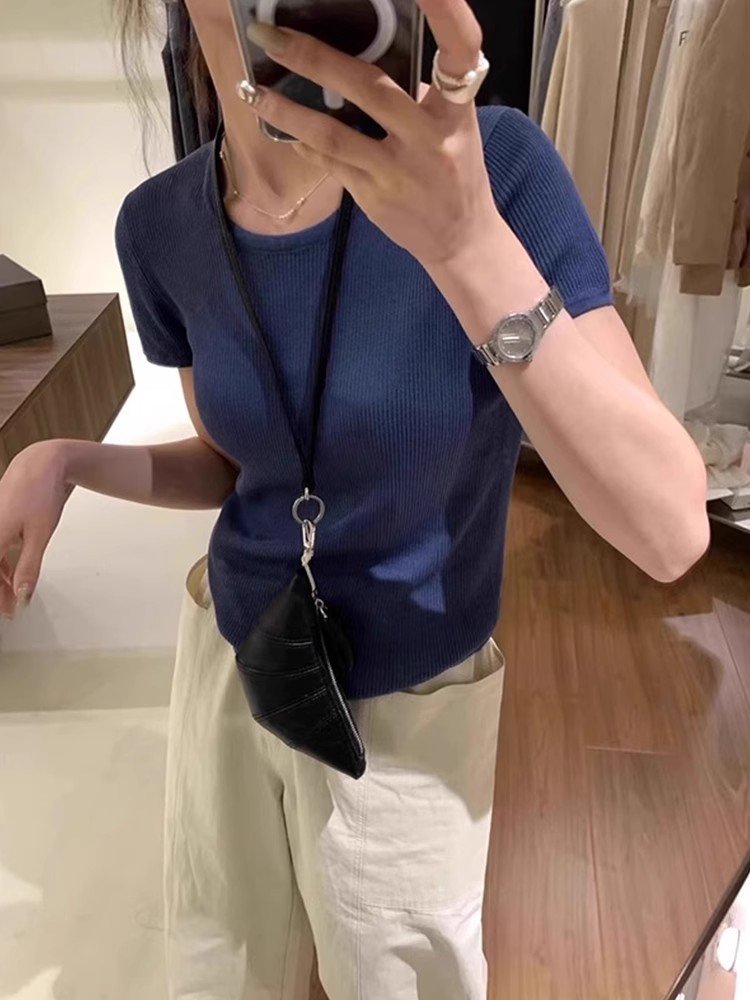 法式甜辣香芋紫飞飞袖短袖正肩t恤小个子冰