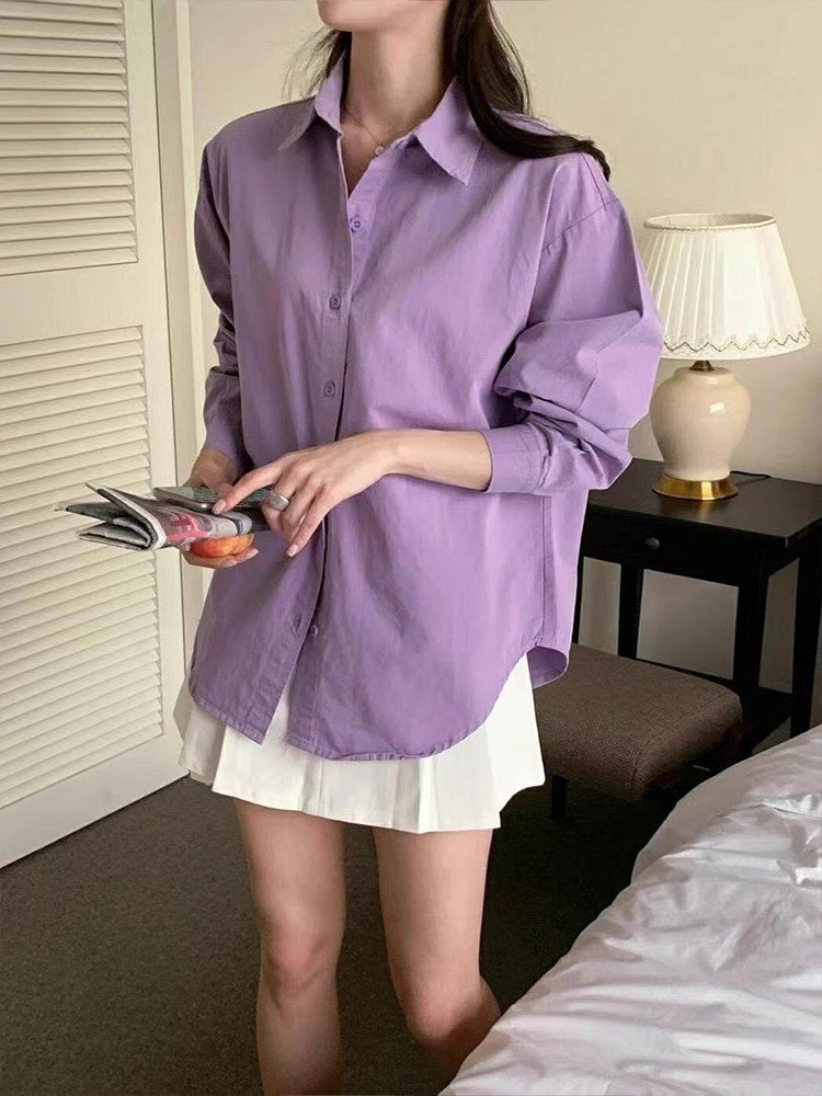 法式紫色polo领翻领衬衫外套女春秋外搭