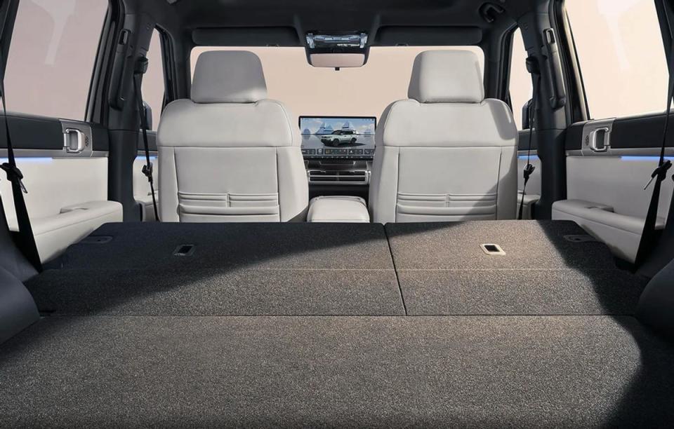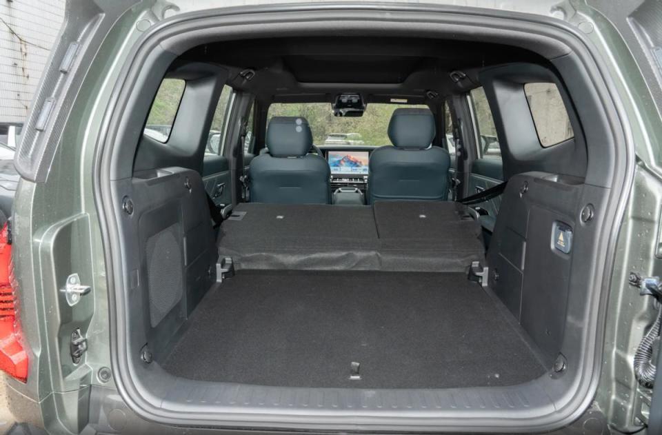 整车的后备箱基础容积达818L,足以容纳多个大型行李箱以及露营桌椅、烧烤架等户外装备,能够轻松应对全家出行或户外探险的装载需求。将后排座椅完全放倒后,后备箱空间可拓展至1747L,形成近乎全平的超大载货空间,秒变 “移动小货车”,甚至可以当作临时休息的床铺使用。例如,一家人周末自驾去露营,不仅能轻松装下所有露营用品,还能在车内搭建一个舒适的休息区域。