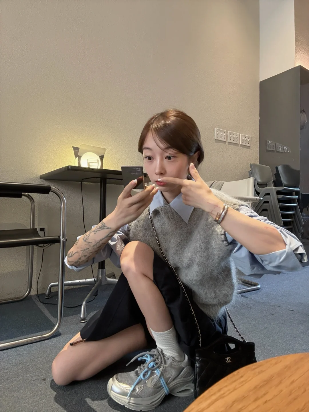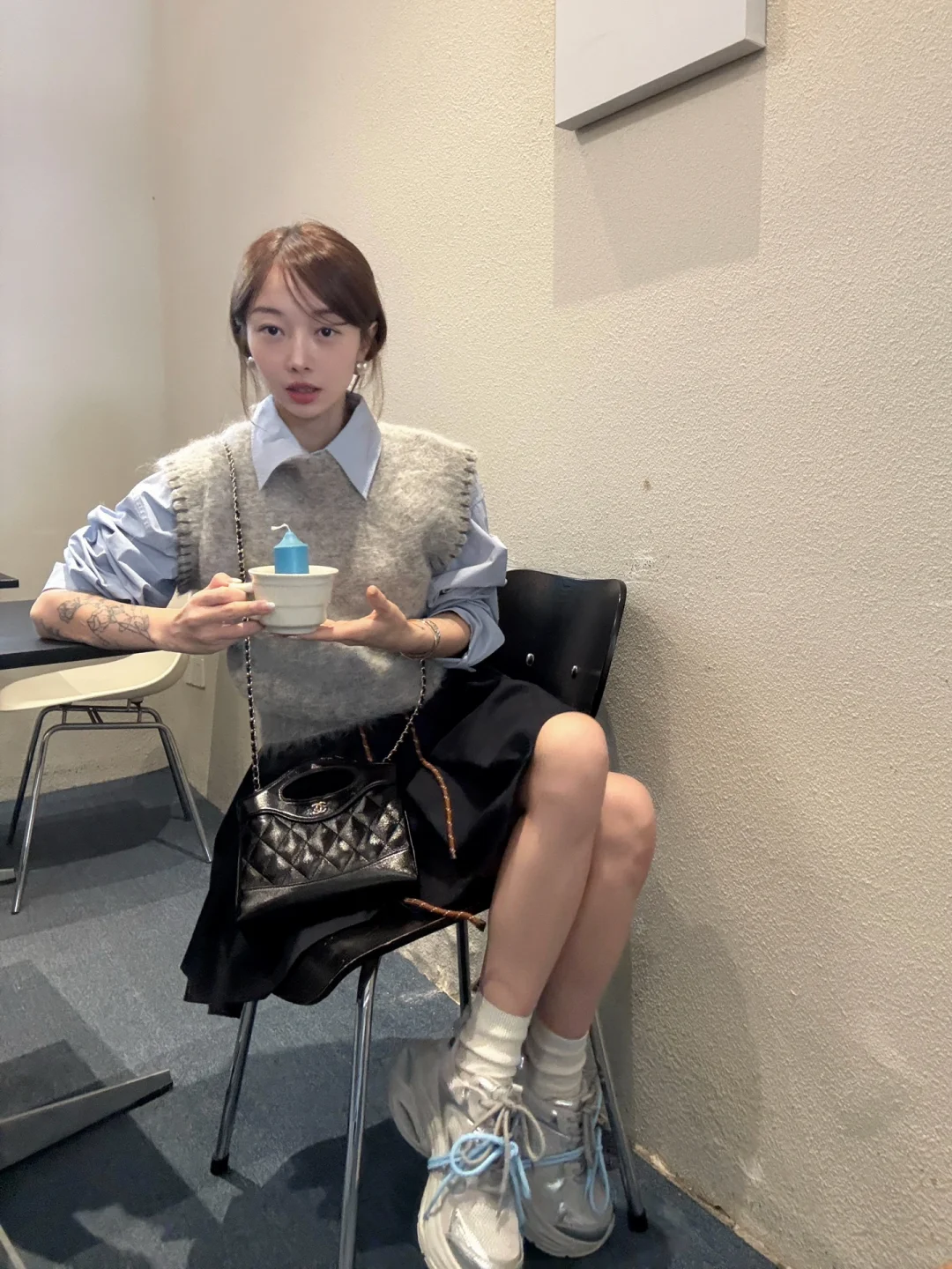 浅蓝衬衫配球鞋👟