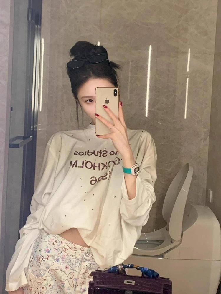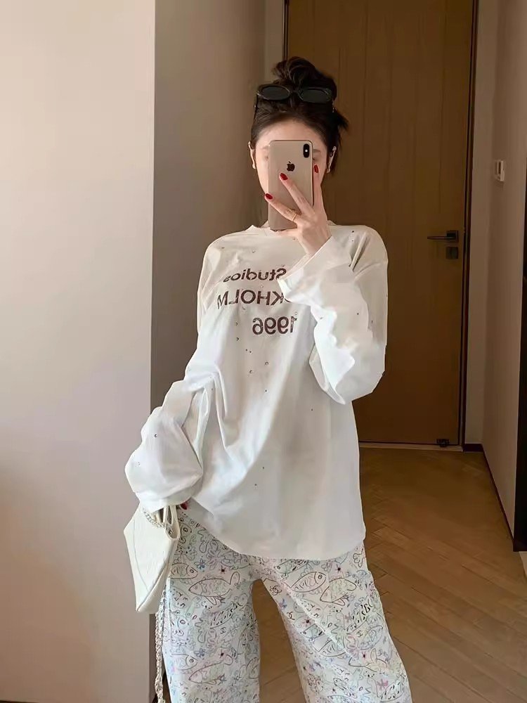 高级感外搭白色重工长袖正肩t恤女早春独特