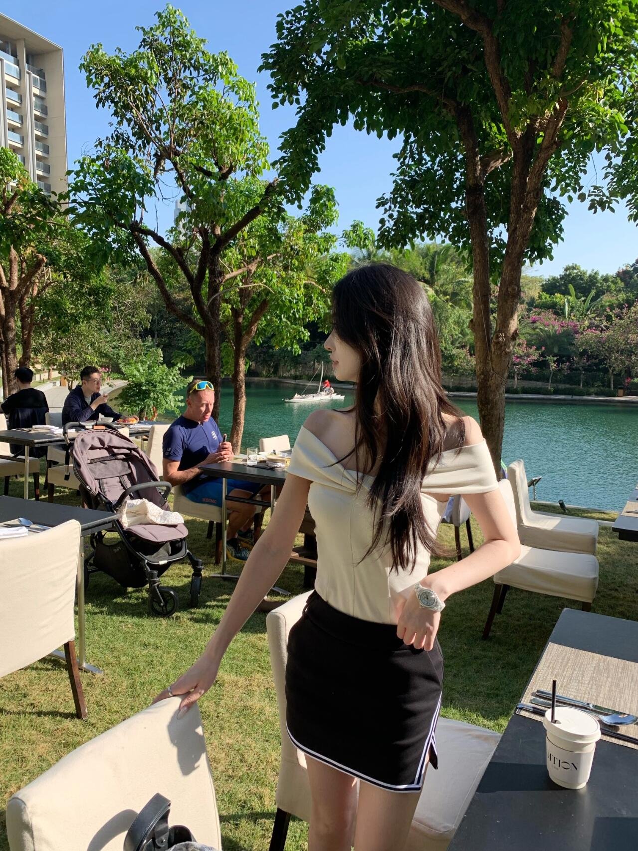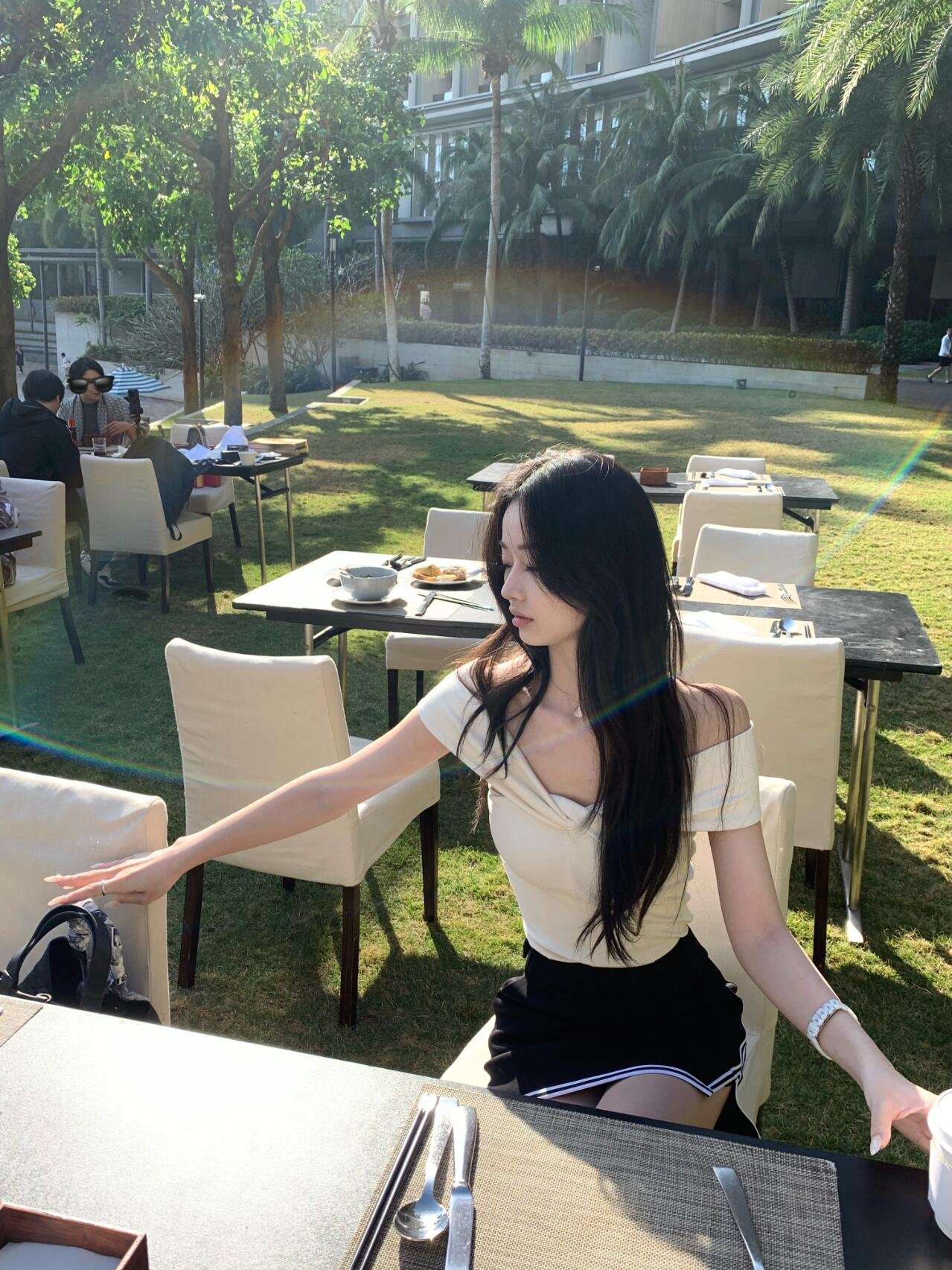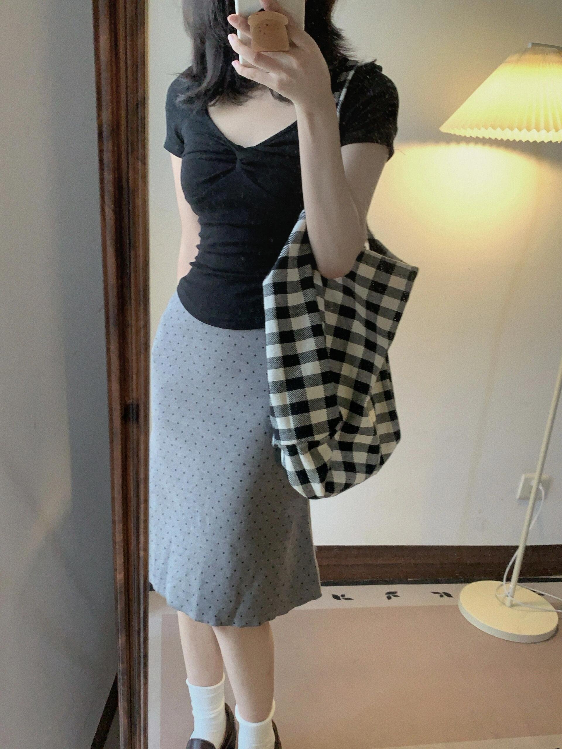 美式辣妹黑色褶皱v领一字领短袖t恤女夏季