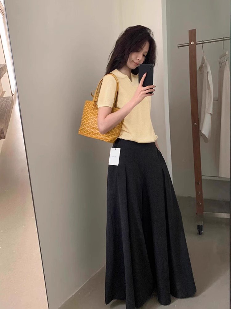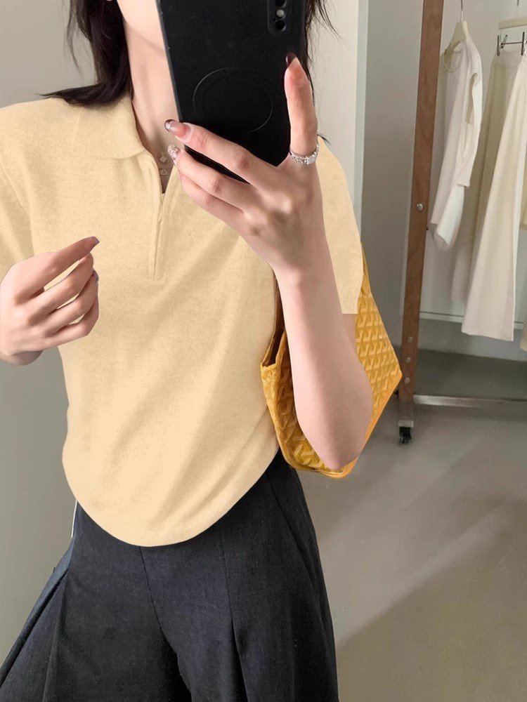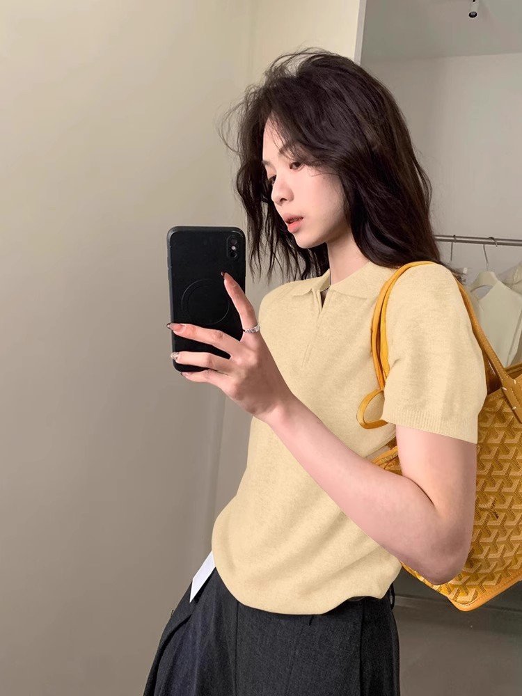小个子黄色拉链polo衫针织冰丝t恤女短