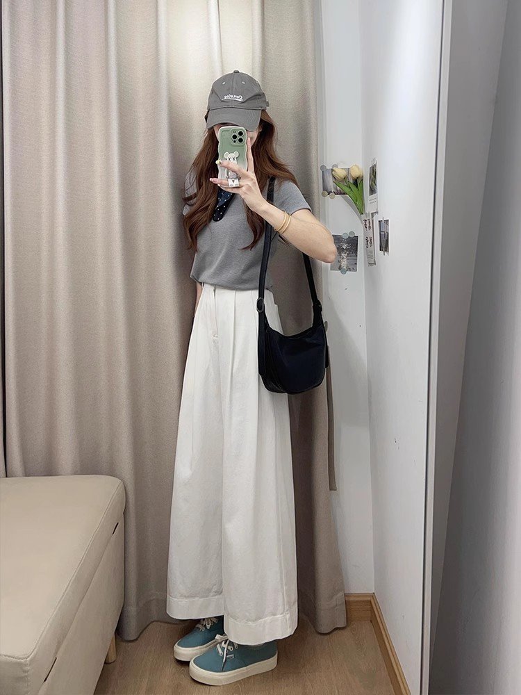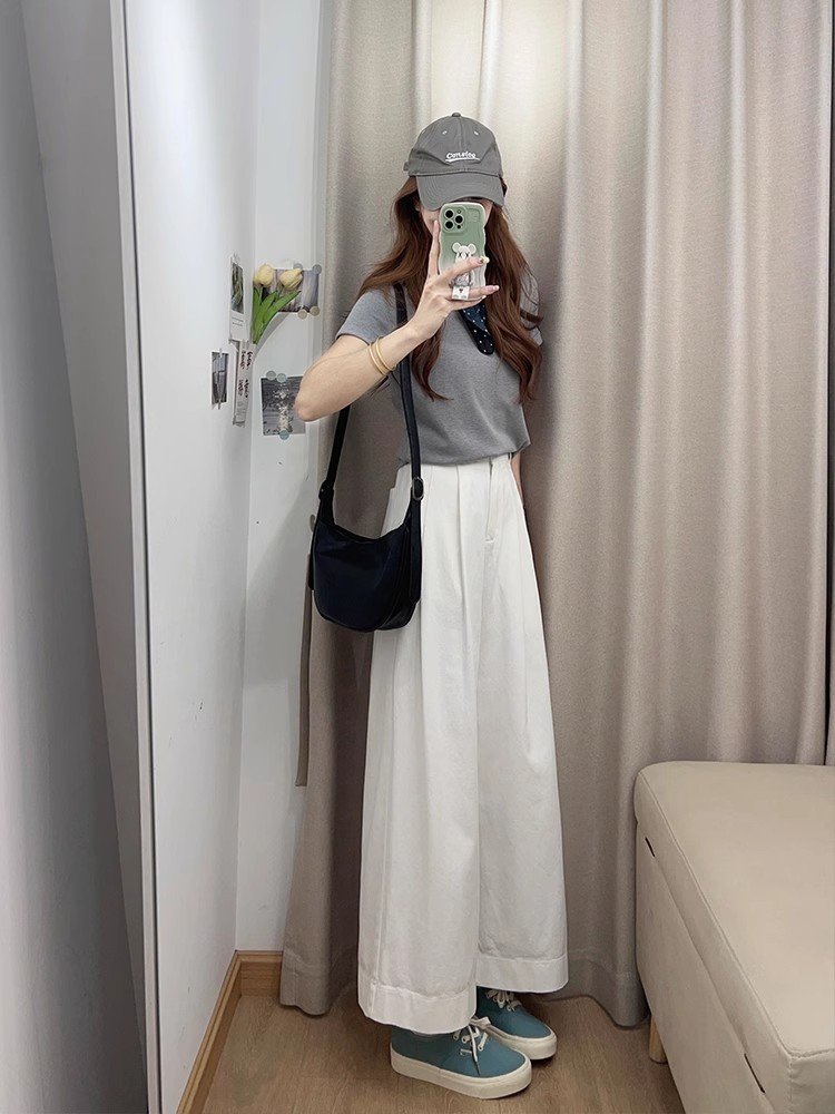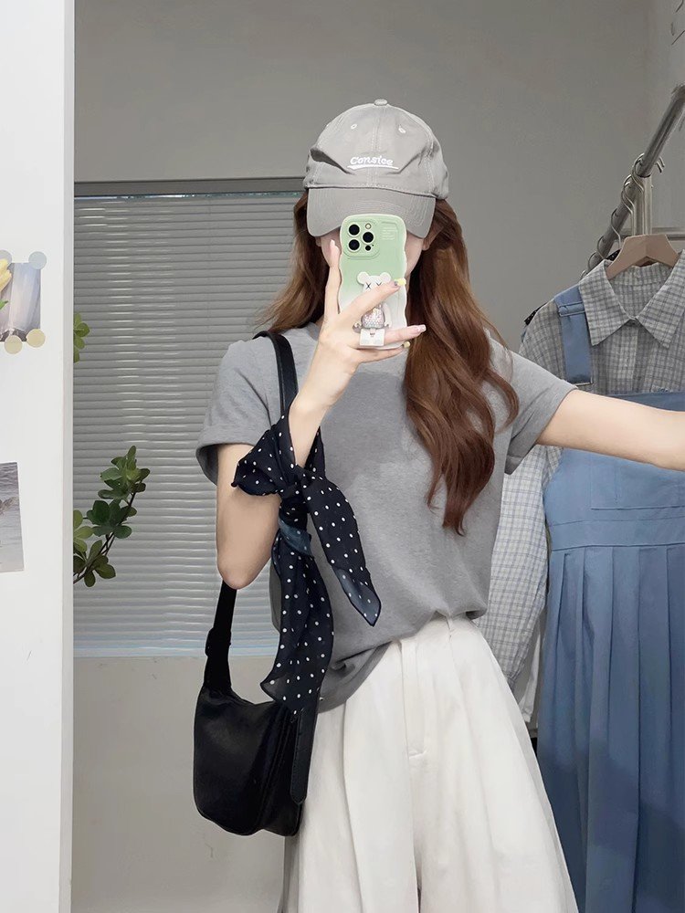 设计感灰色短袖正肩t恤女夏季小个子独特别