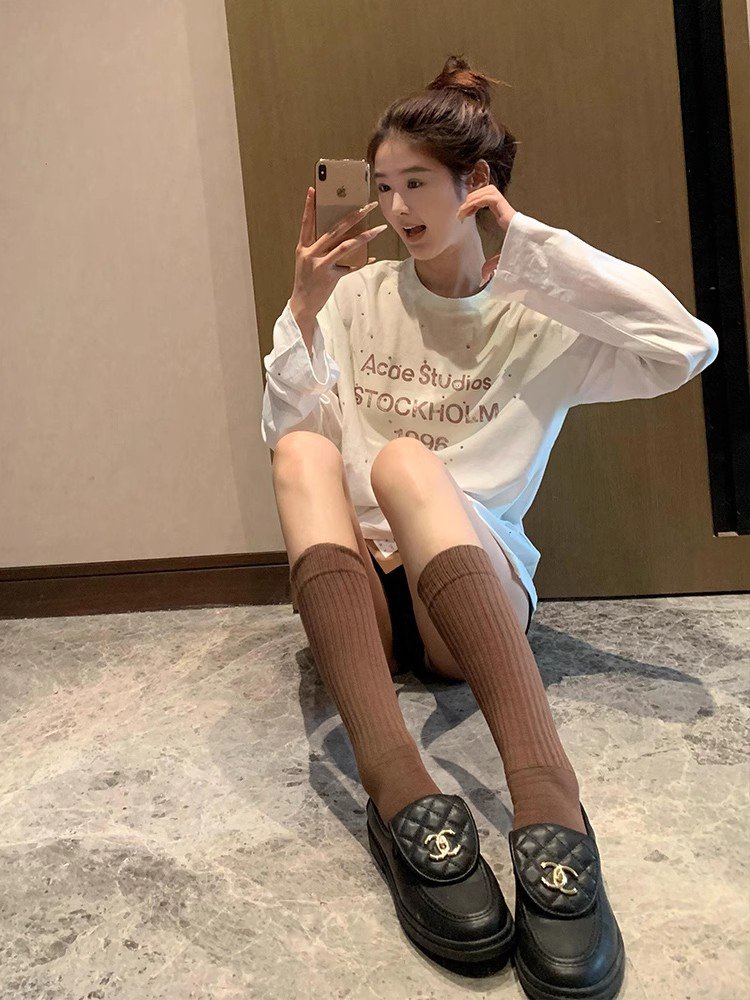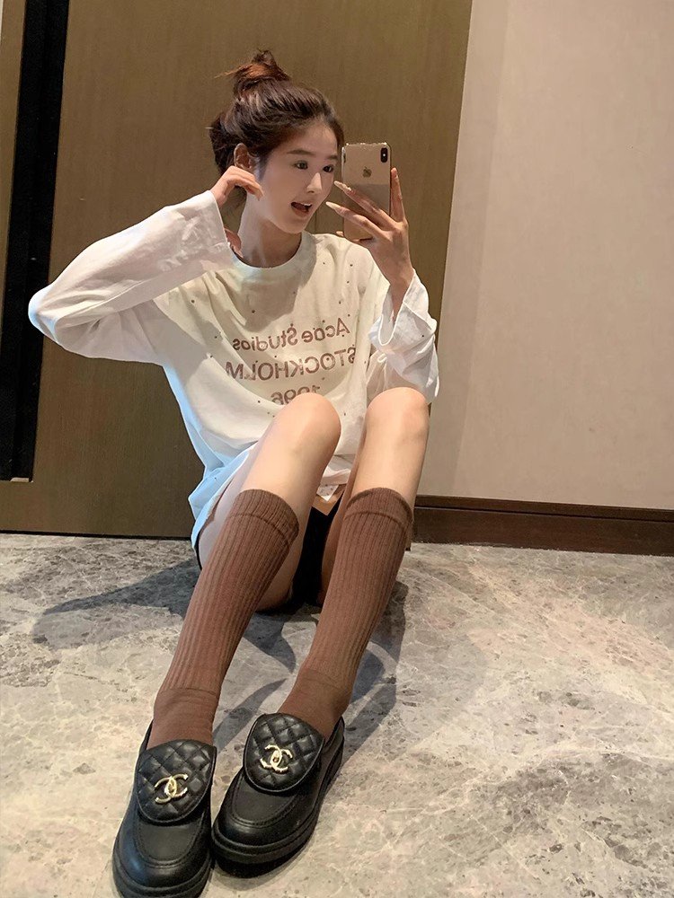 美式复古白色字母印花正肩长袖t恤女春秋独