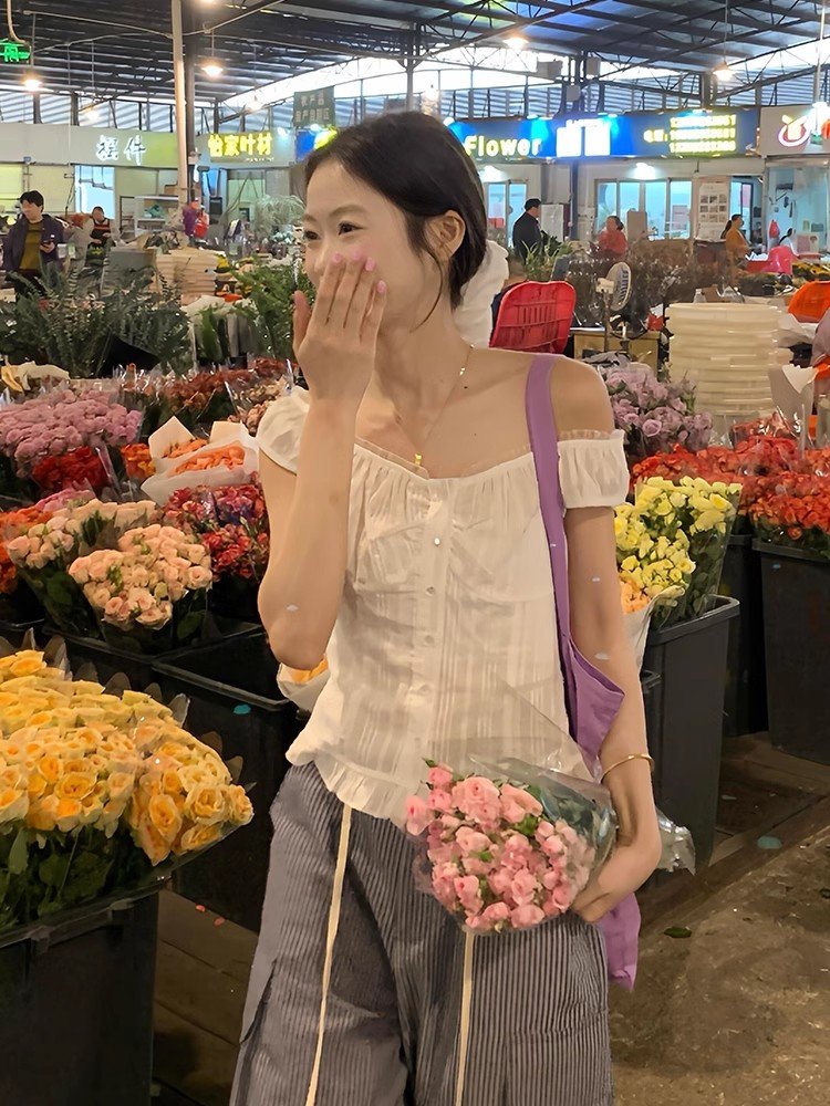 法式白色小飞袖一字肩短袖衬衫女夏季设计感